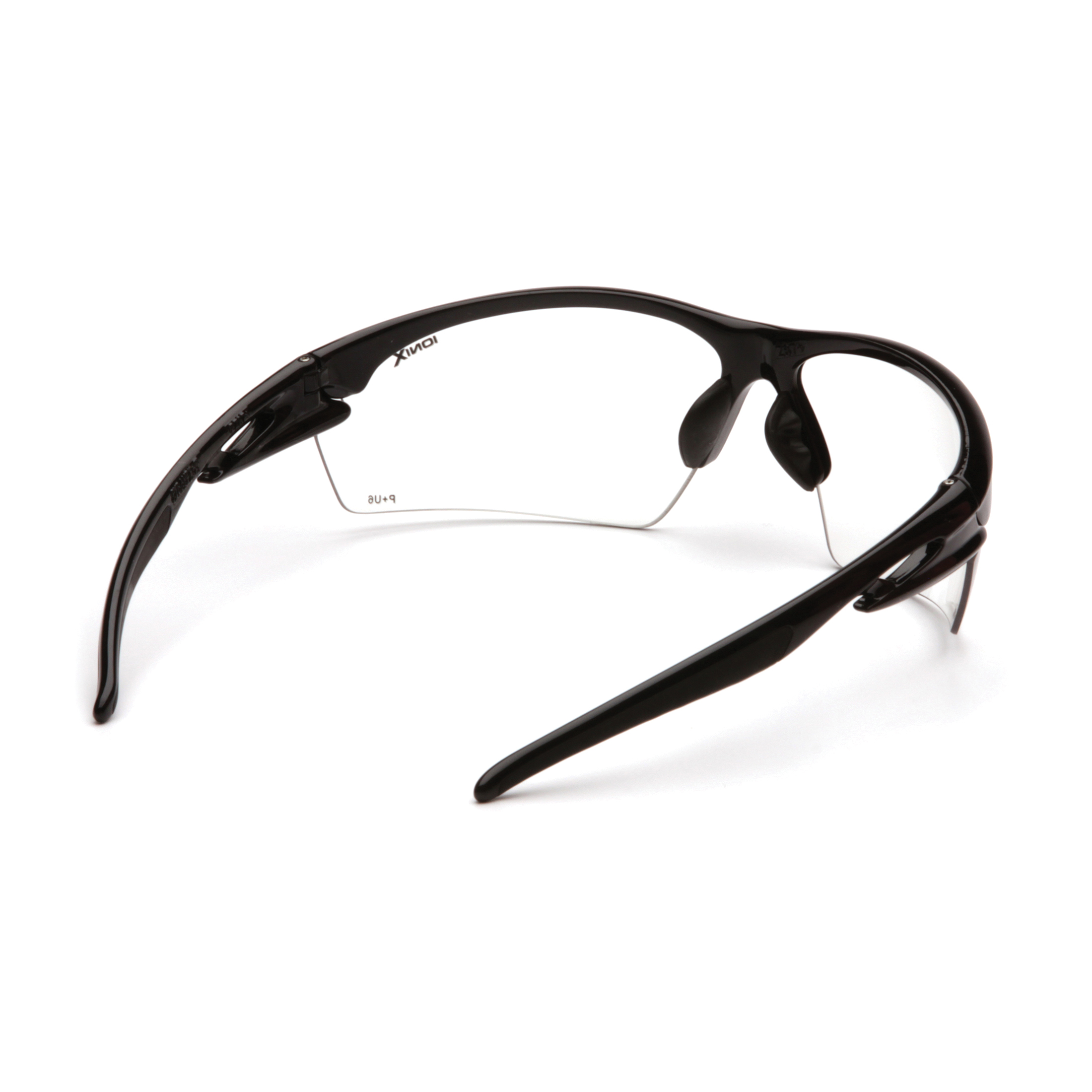 Pyramex® SB8110DT Extreme Style Safety Eyewear, Anti-Fog, Clear Lens, Black, Nylon Frame, Polycarbonate Lens, ANSI Z87.1, AS/NZS 1337, CAN/CSA Z94.3-07, CE EN166, MIL-PRF 32432