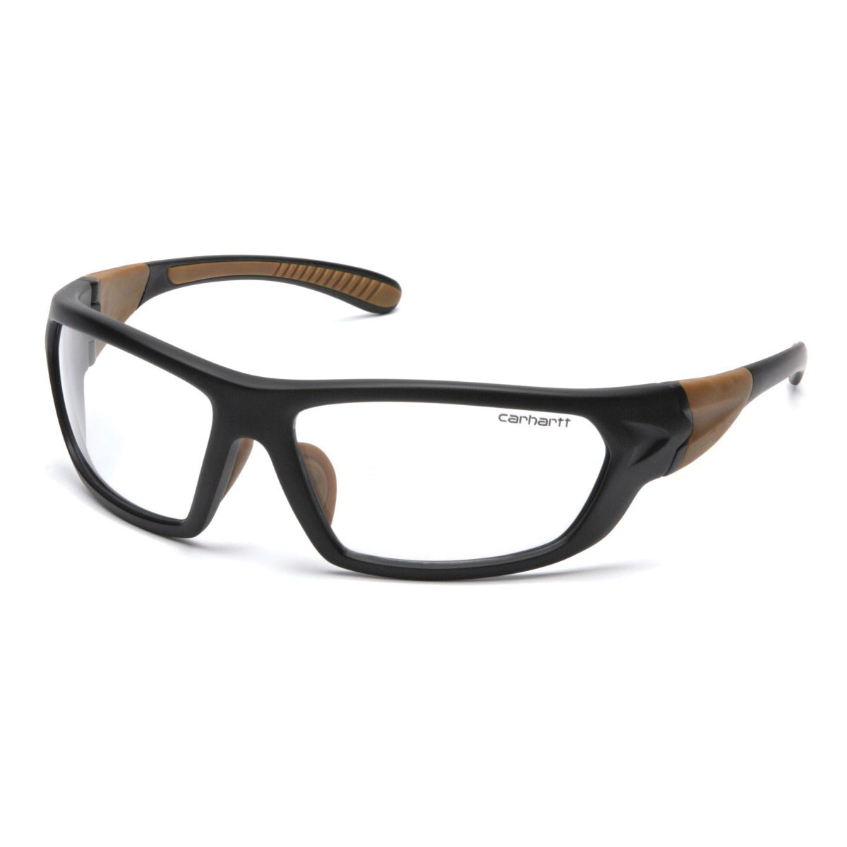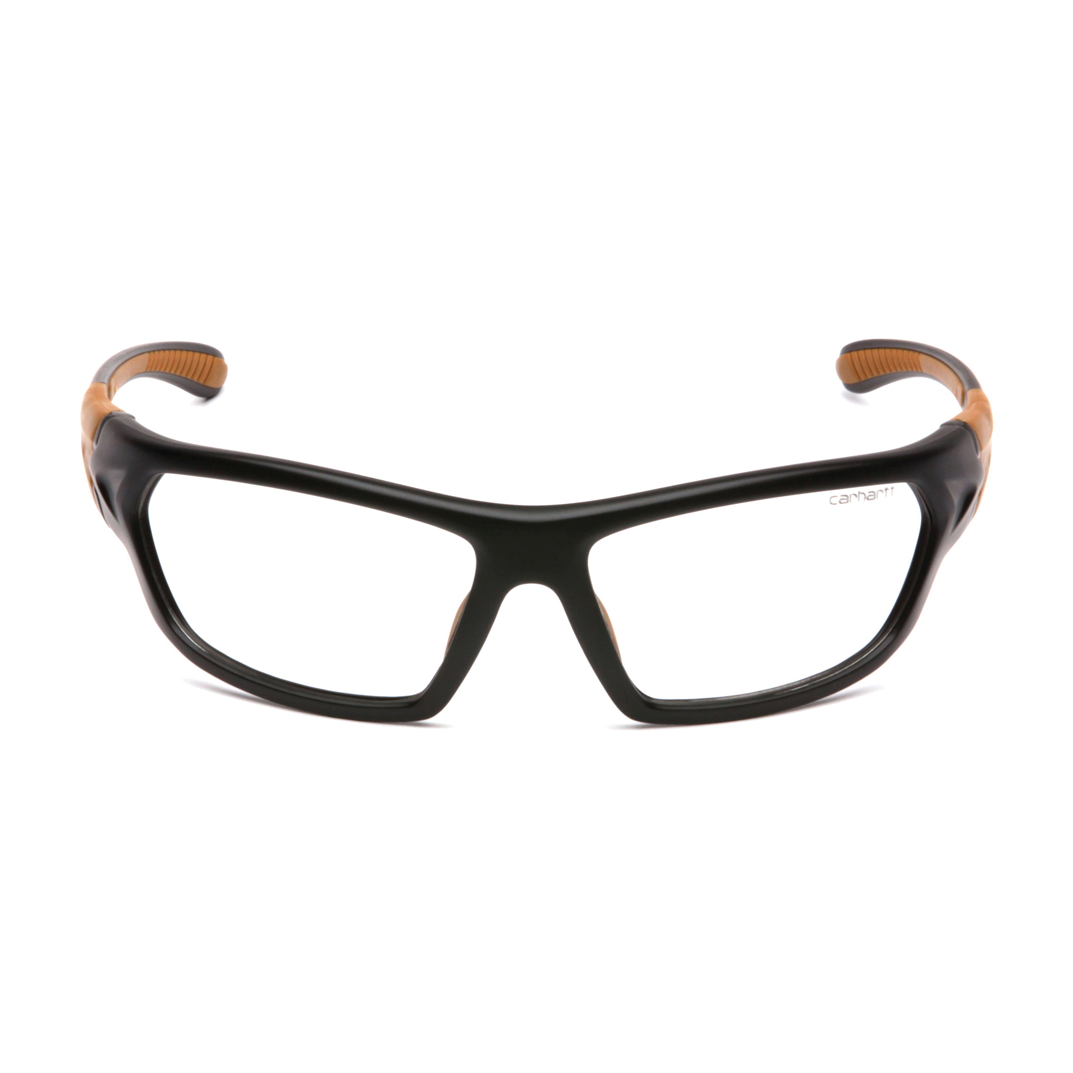 Carhartt® CHB210DT Safety Eyewear, Anti-Fog, Clear Lens, Wrap Around Frame, Black/Tan, Nylon Frame, Polycarbonate Lens, ANSI P Z87.1, CAN/CSA Z94.3-15