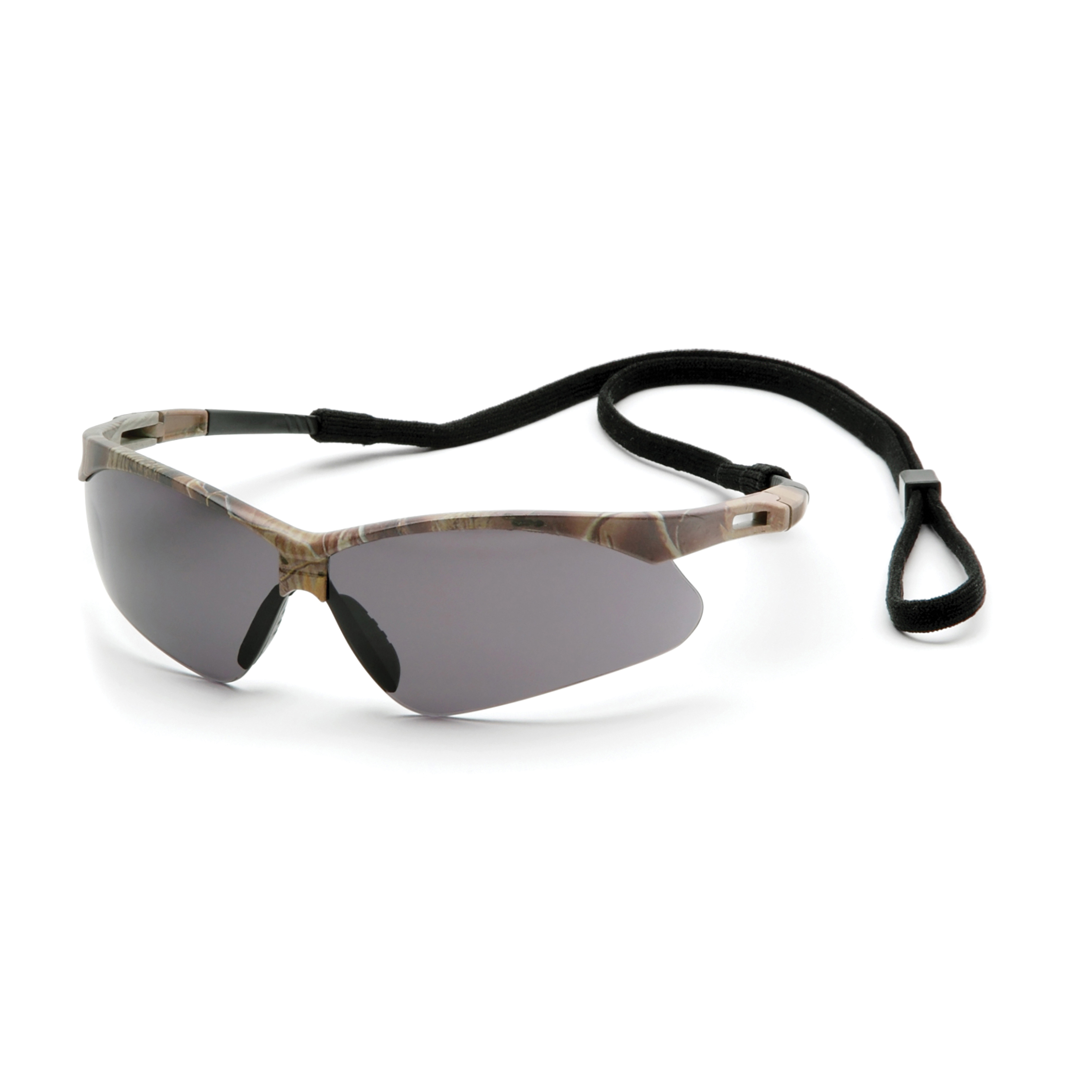 Pyramex® SCM6320STP Safety Eyewear With Black Lanyard Cord, Anti-Fog, Gray Lens, Half-Frame Frame, Camouflage, Nylon Frame, Polycarbonate Lens, ANSI Z87.1
