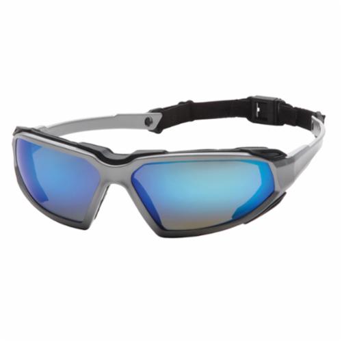 Pyramex® SSB5065DT Safety Eyewear With Detachable Strap, Anti-Fog, Ice Blue Mirror Lens, Black/Silver, Foam Lined/Plastic Frame, Polycarbonate Lens, ANSI Z87.1, CE EN166
