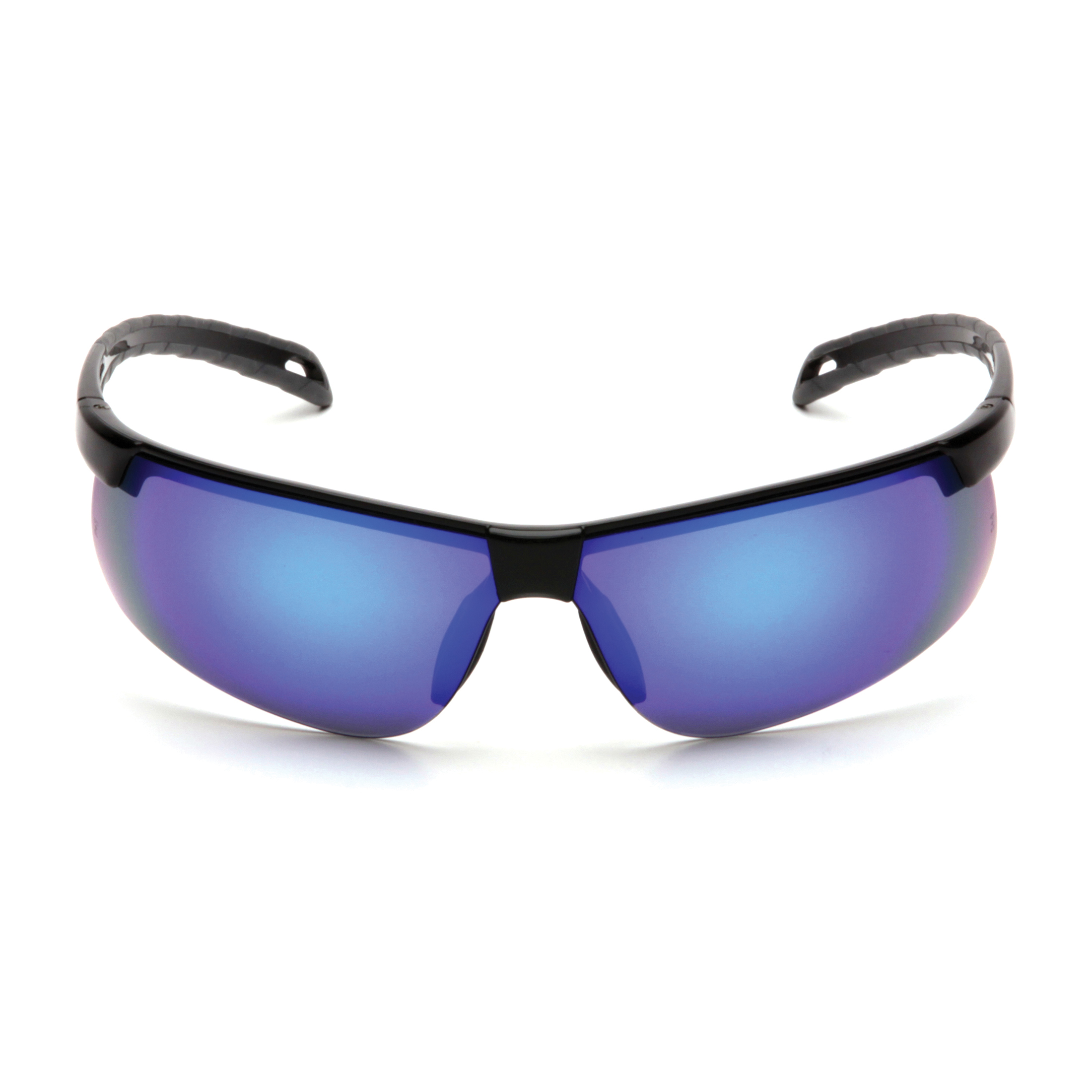 Pyramex® SB8665D Lightweight Safety Eyewear, Anti-Scratch, Ice Blue Mirror Lens, Half-Frame Frame, Black, Polycarbonate Frame, ANSI Z87.1, CAN/CSA Z94.3-15, CE EN166, MIL-PRF 32432