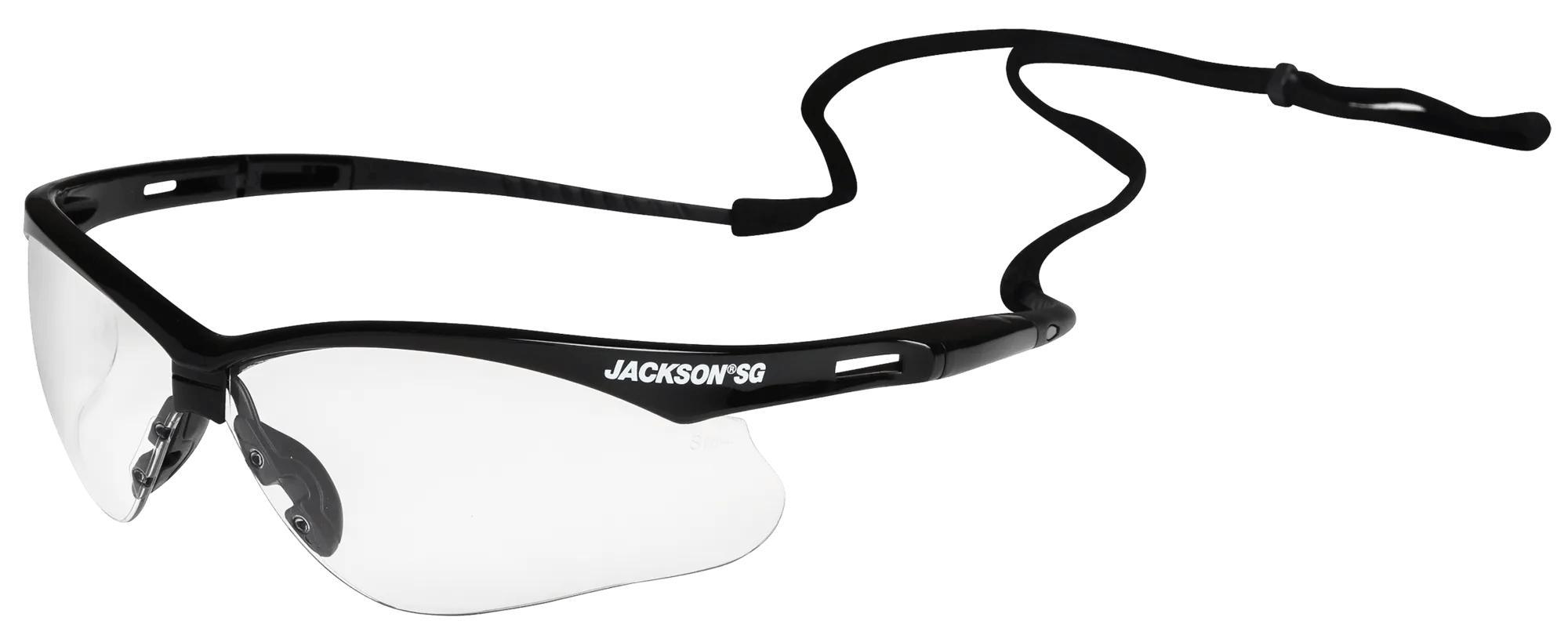 JACKSON SAFETY® 50000 Jackson® SG Ultra-Strong Safety Glasses With Soft Touch Temples and Flexible Nose Piece, Hard Coated Anti-Scratch, Clear Lens, Black, Polycarbonate Lens, ANSI A87.1, OSHA Standard, CSA Z94.3, CE 166
