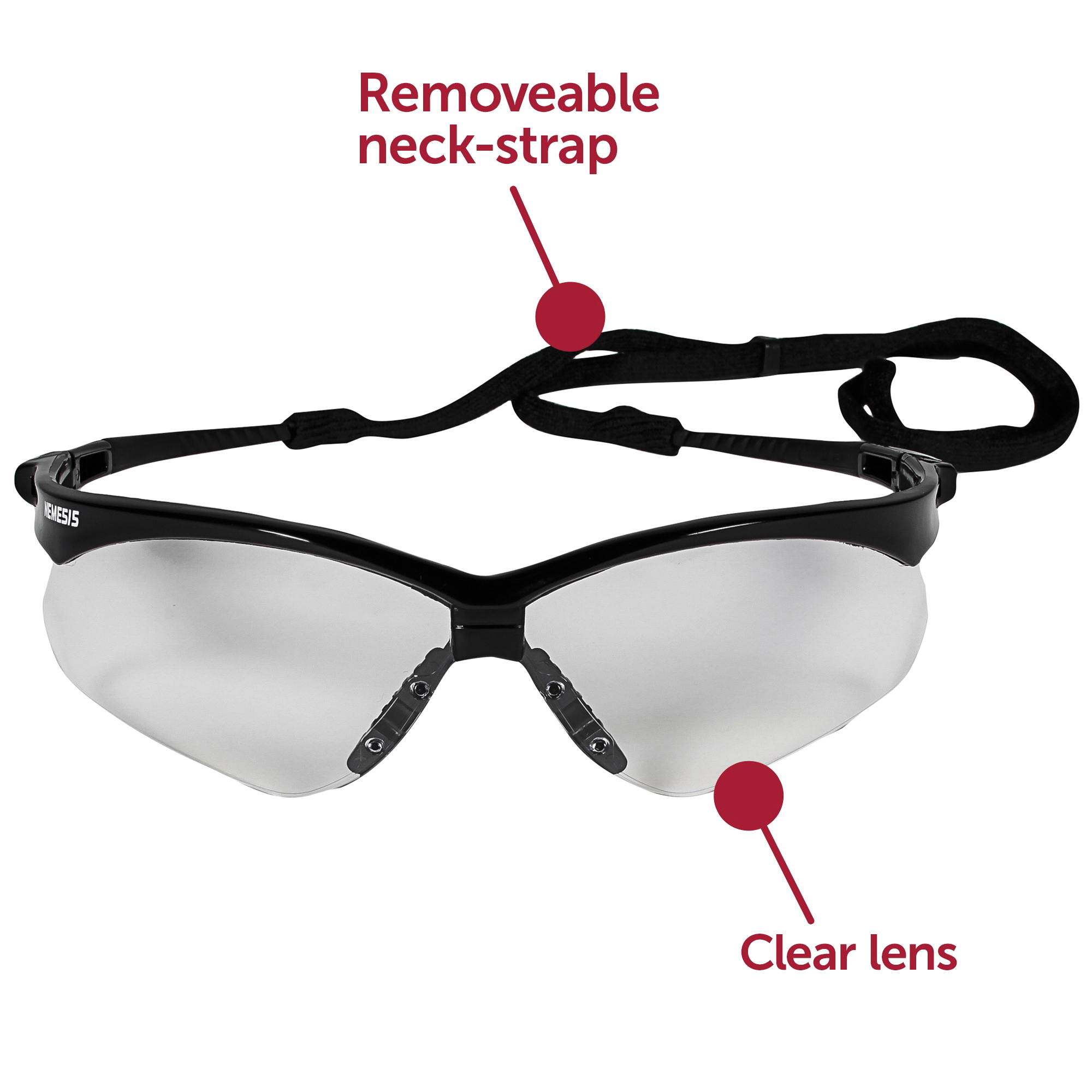 - Jackson Safety* V30 Nemesis* safety glasses feature a sporty, flexible, lightweight design that your employees will be happy to wear, they have a stylish, sporty look and feel