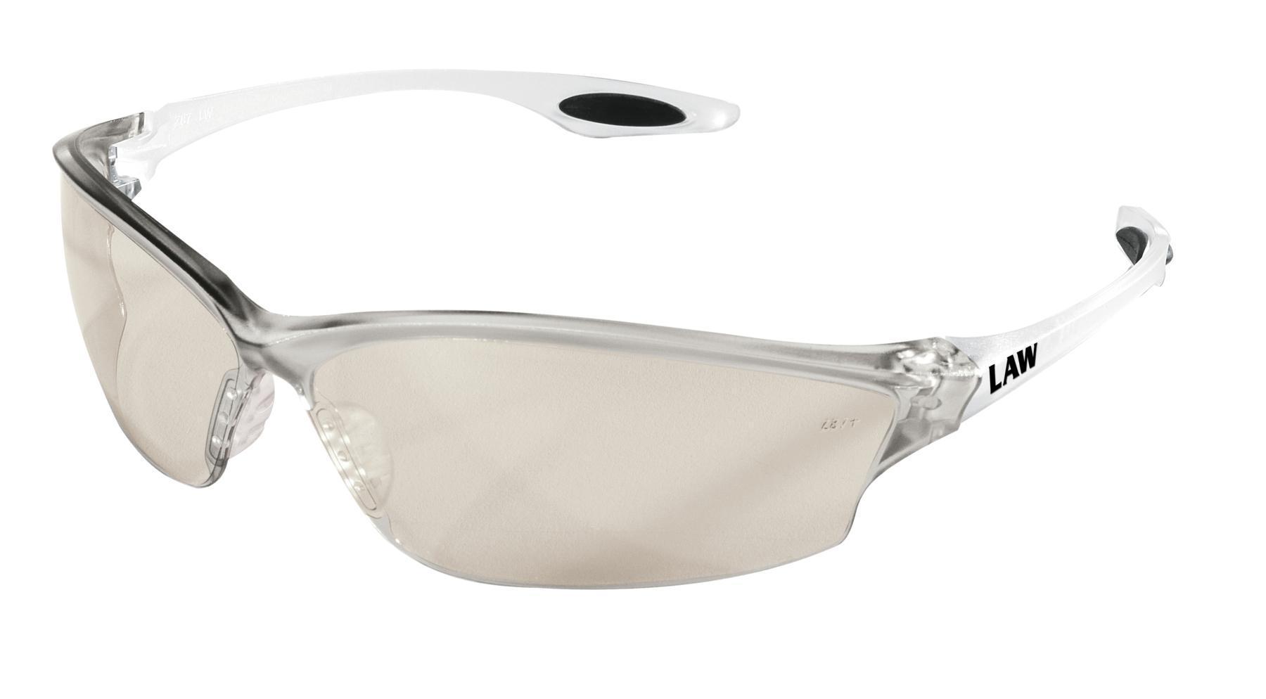 MCR Safety LW219 Law® 2 Plus Dielectric Single Lens Safety Glasses With Side Shields, Duramass® Hard Coat, Indoor/Outdoor Clear Mirror Lens, Wrap Around Frame, Nylon Frame, Polycarbonate Lens, ANSI Z87+, CE EN 166, CAN/CSA Z94.3