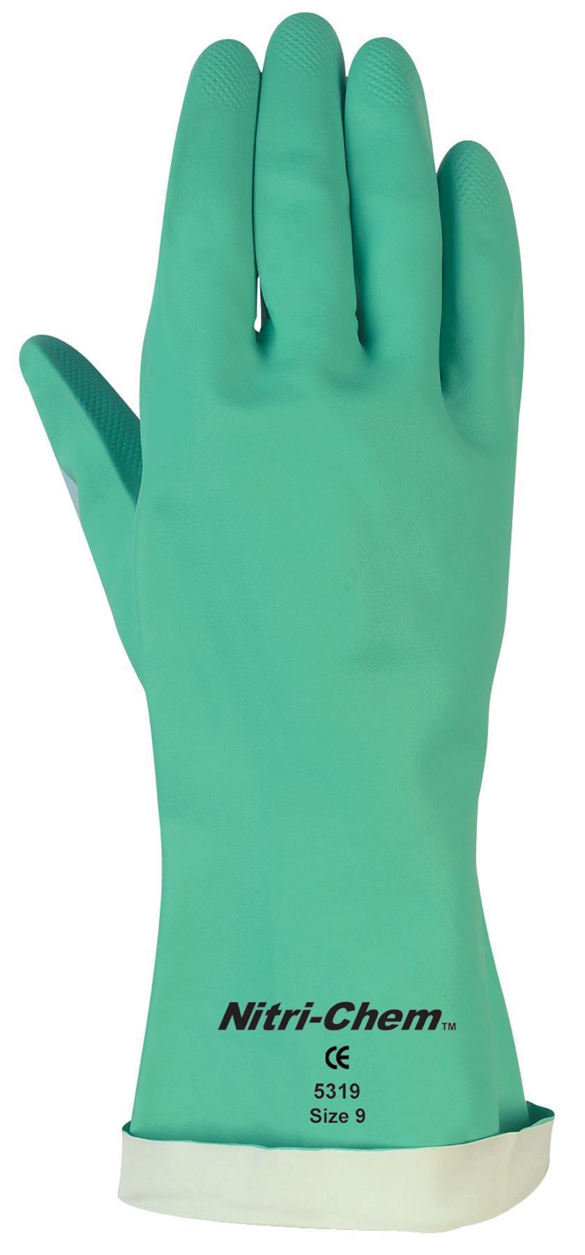 MCR Safety 5316 Nitri-Chem™ Industrial Grade Chemical-Resistant Gloves With Black Logo, XS, Paired Hand, Nitrile, Green, Flock Lining, 13 in L, Resists: Chemical and Puncture, Unsupported Support, Straight Cuff, 15 mil THK