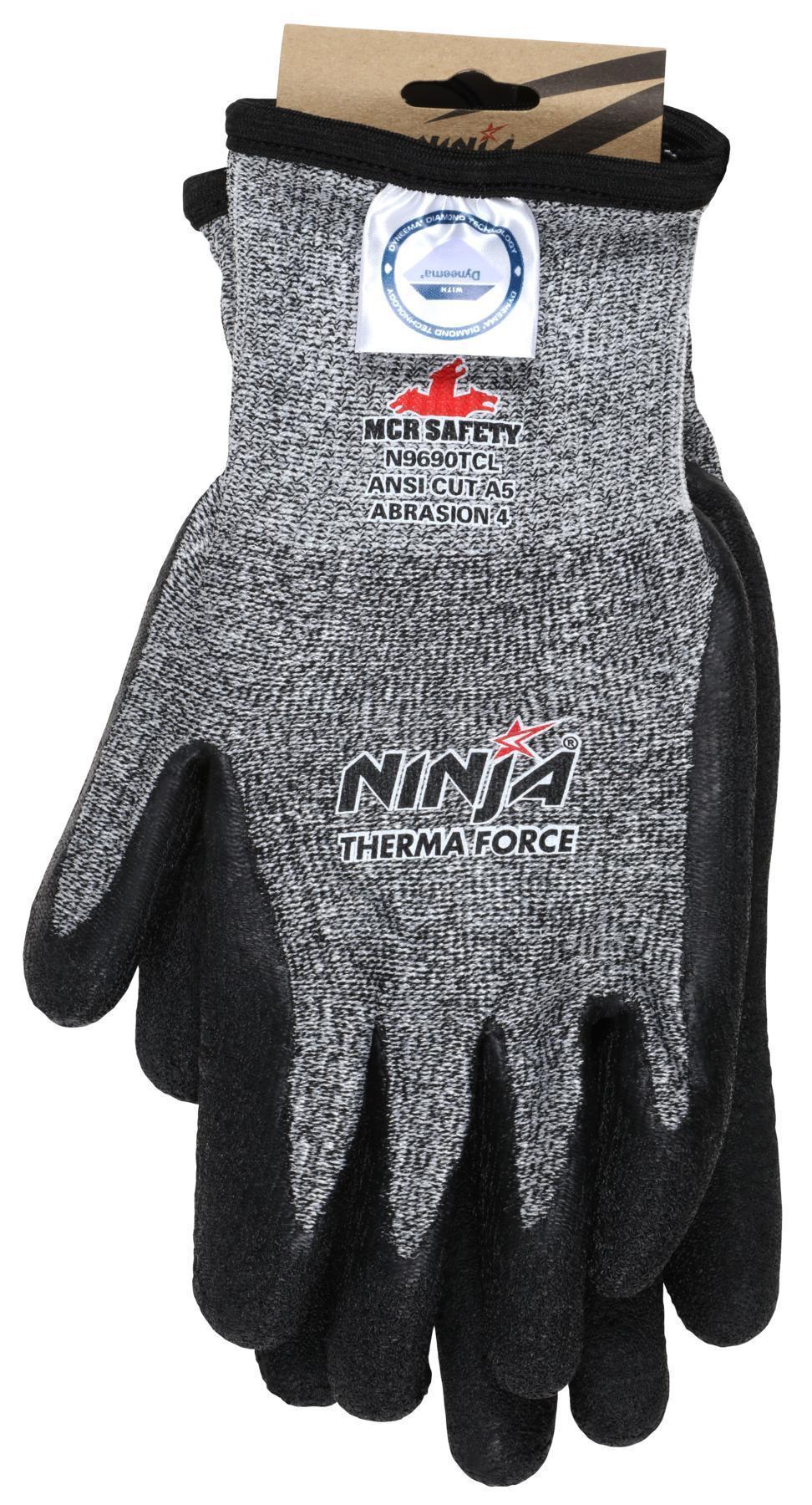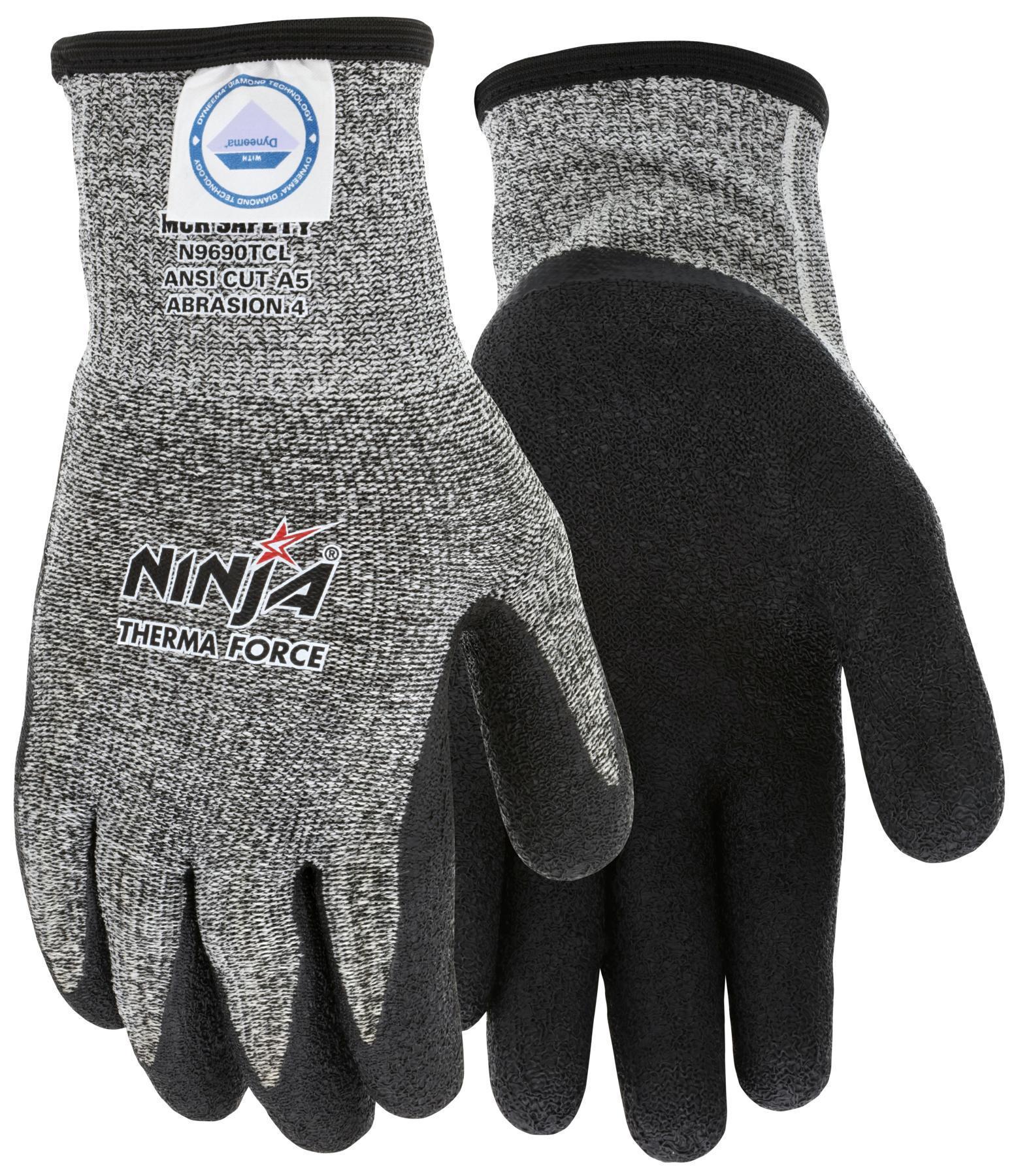 MCR Safety N9690TCXXL Ninja® Force N9690TC Insulating Gloves, 2XL, Bi-Polymer Coating, Acrylic/Dyneema®, Knit Wrist Cuff, Resists: Abrasion, Cut, Puncture and Tear, ANSI Cut-Resistance Level: A5, ANSI Puncture-Resistance Level: 4, Ambidextrous Hand