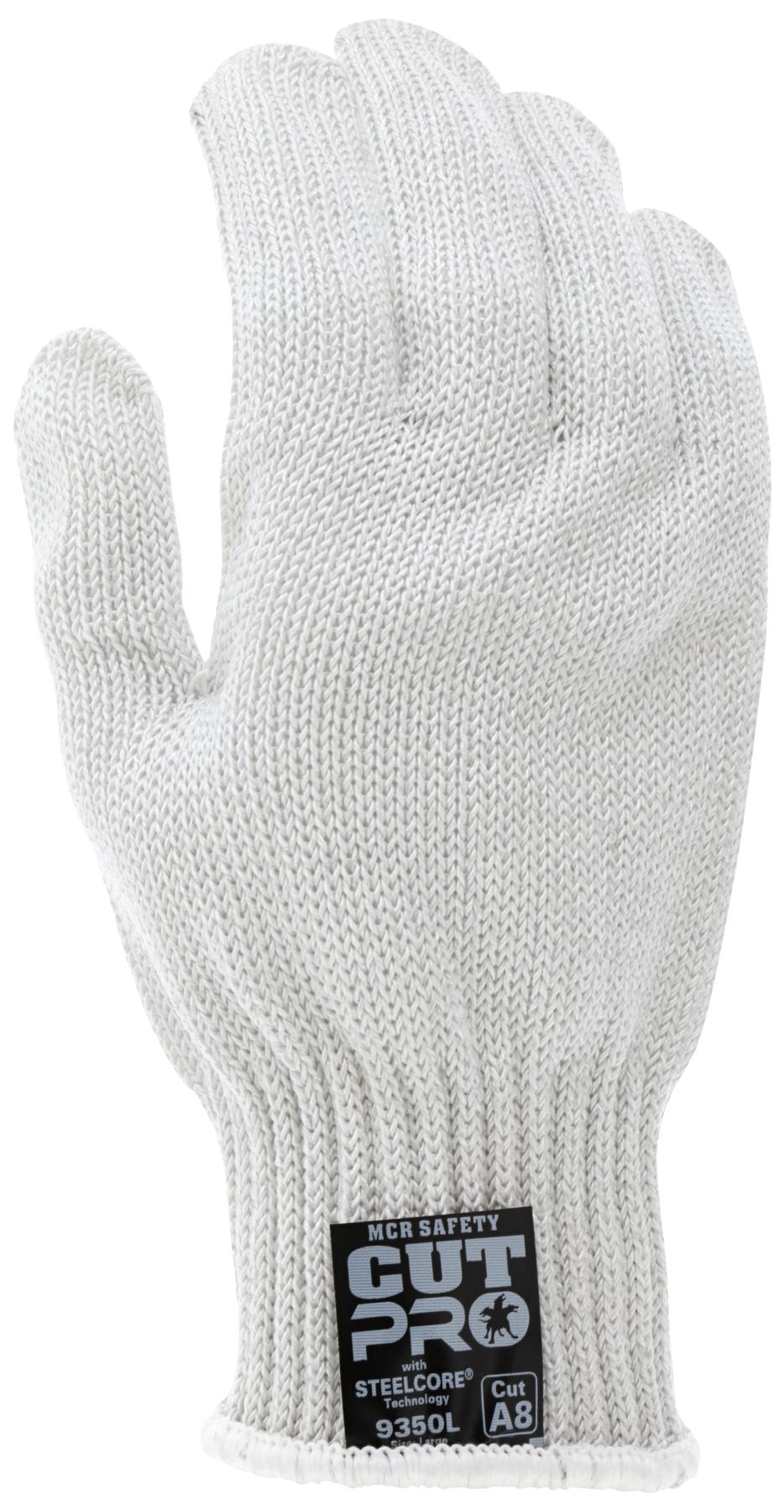 MCR Safety 9350L Steelcore® II 9350 Regular Weight Gloves, L, Uncoated Coating, 7 ga Cotton/Polyester/Stainless Steel, Knit Wrist Cuff, Resists: Cut, ANSI Cut-Resistance Level: A8