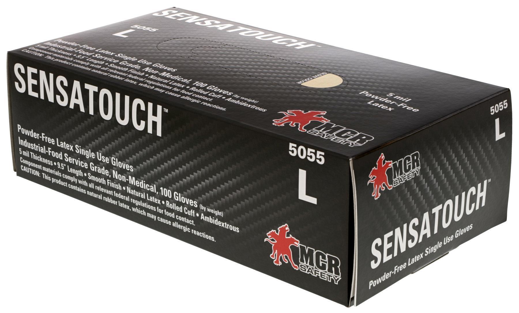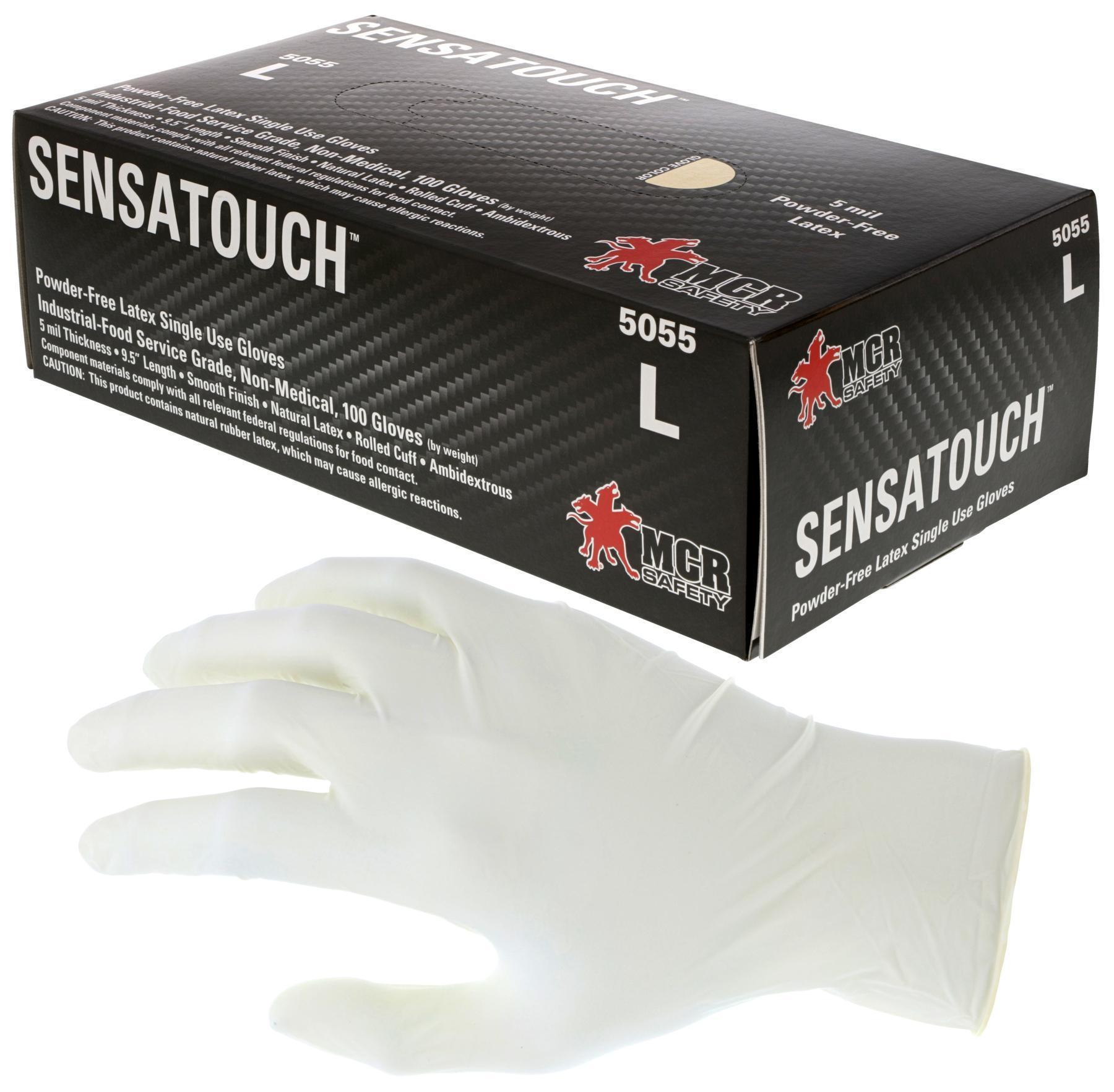 5 mil (4.9 g) SensaTouch™ Gloves Powder Free Disposable Latex Industrial Food Service Grade Textured Finish 9.5 Inches Natural Component materials comply with all federal regulations for food contact Rubber latex, by its very nature, is a natural substance. The natural rubber latex polymer used to manufacture latex gloves is biodegradable, inherently antimicrobial, and antibacterial. The 5055 SensaTouch™ latex gloves are industrial food service grade and measure 5 mils thick. They have a textured finish and are powder-free. Are you looking for the best disposable latex gloves? Look no further than MCR Safety! *Note that natural rubber latex may cause allergic reactions in some people* Click here to view our other disposable glove options .