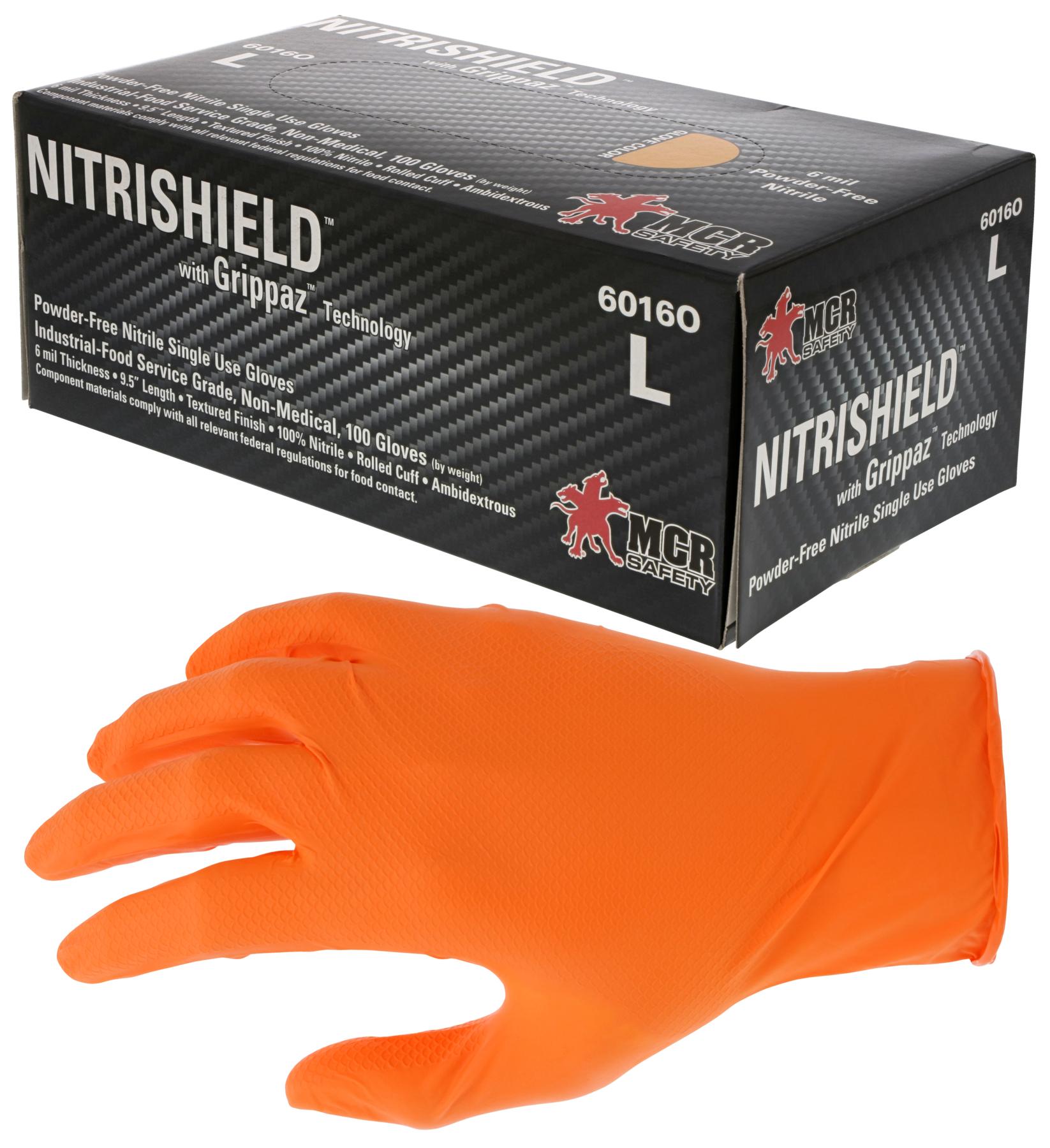 MCR Safety 6016OXL NitriShield™ 6016O Non-Sterile Disposable Gloves, XL, Nitrile, Orange, 9-1/2 in L, Non-Powdered, 6 mil THK, Application Type: Industrial Grade, Ambidextrous Hand