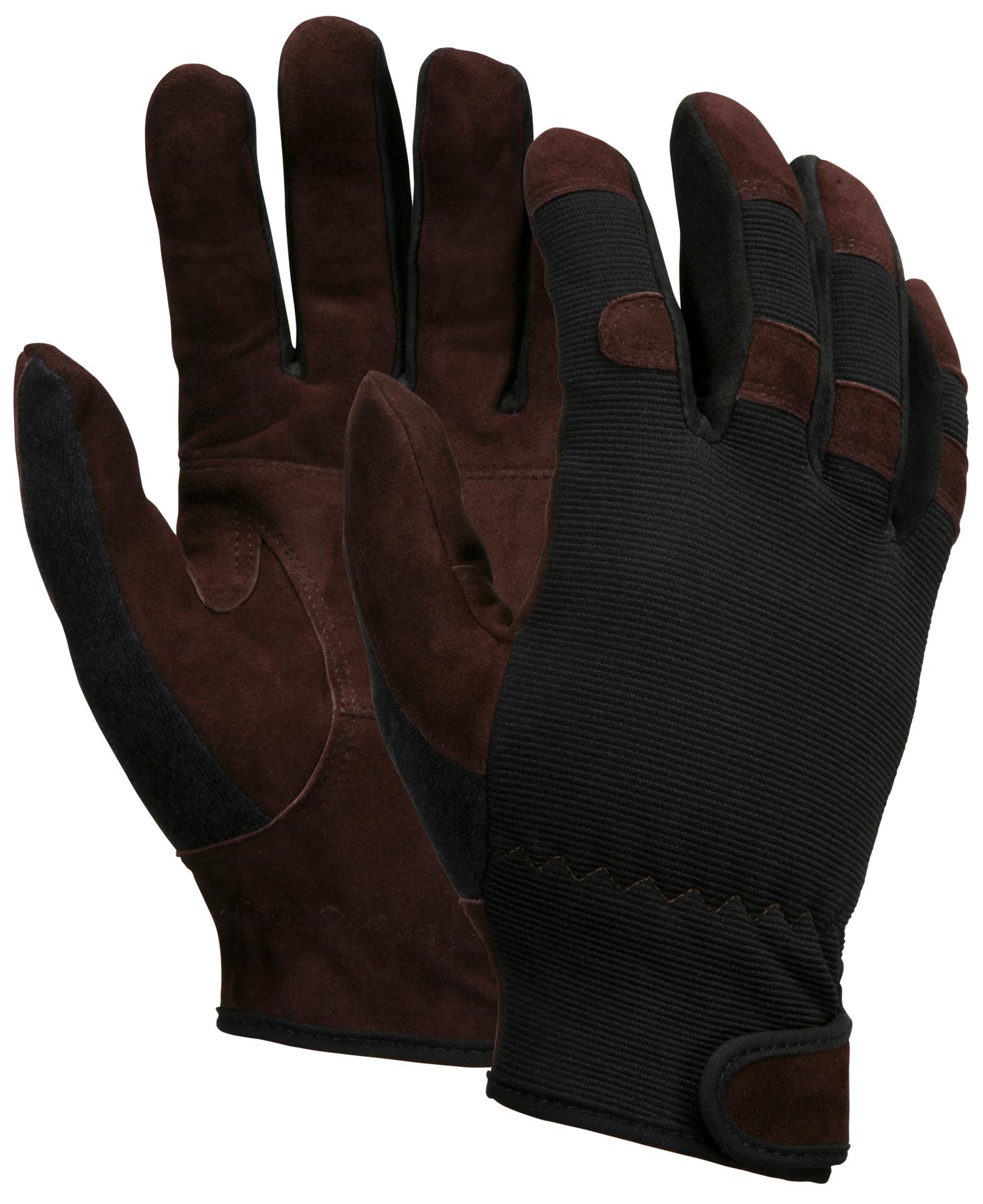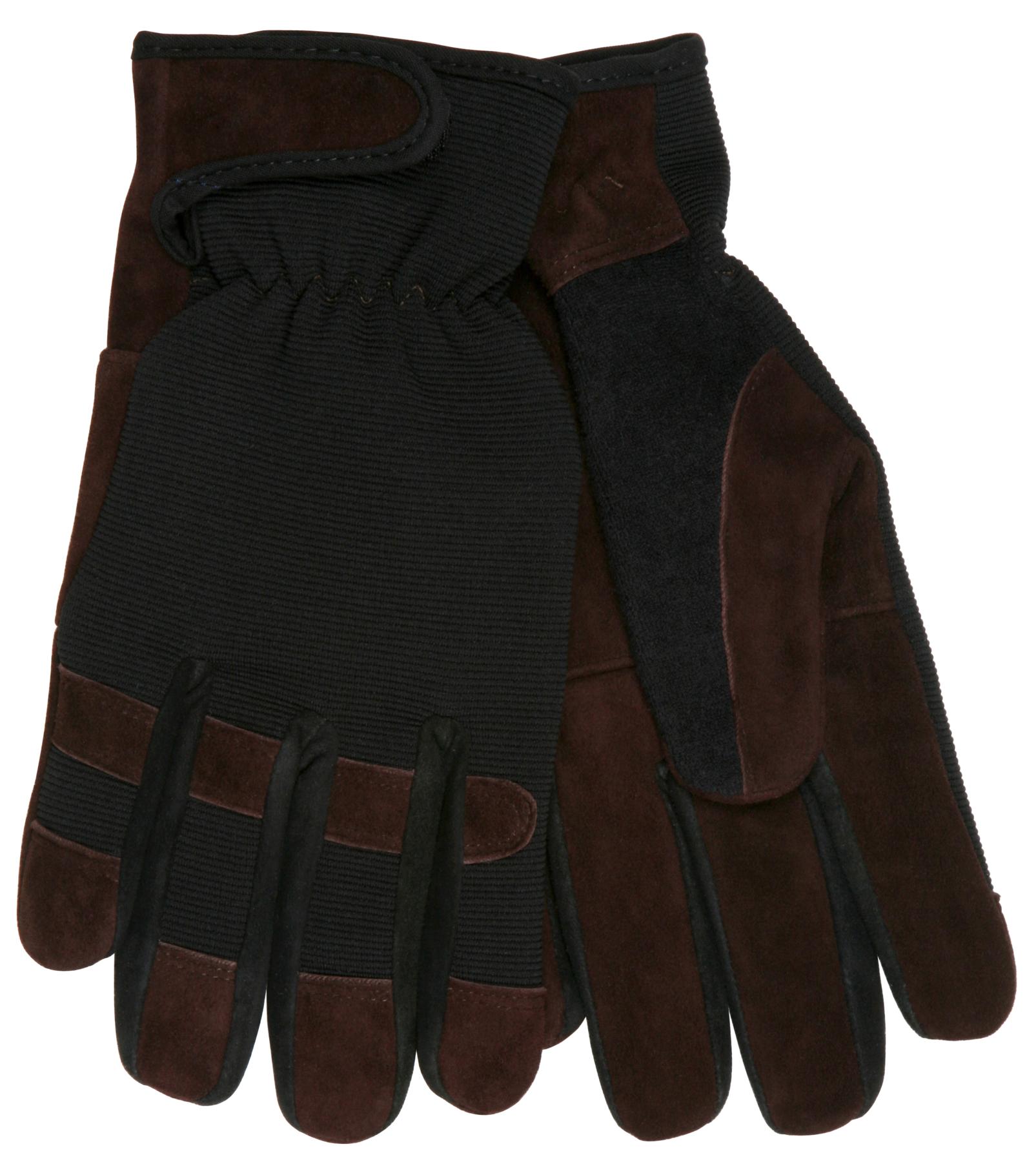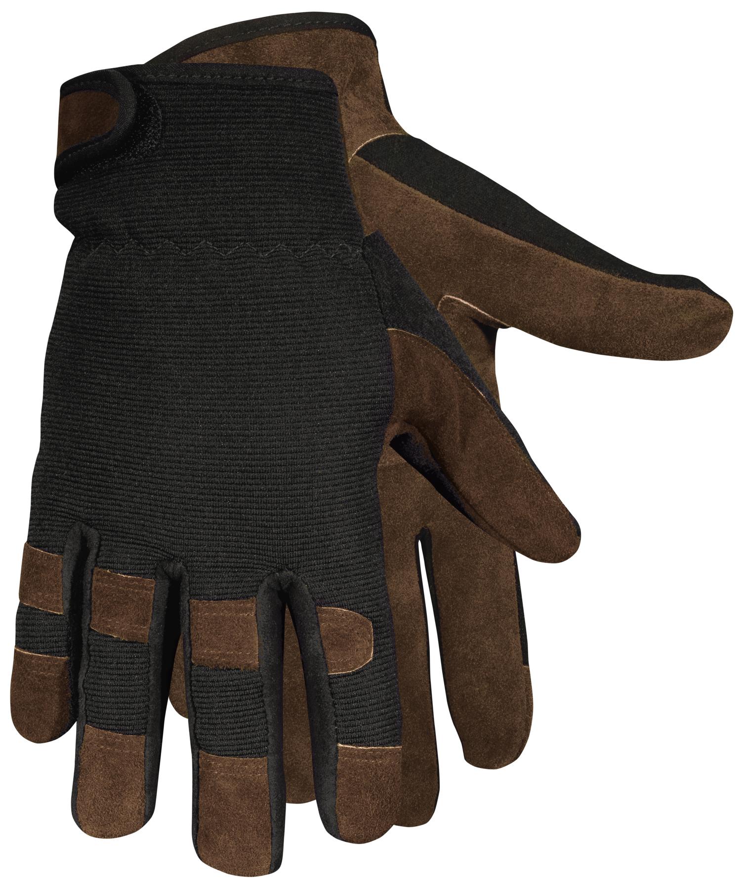 MCR Safety 920XXL 920 Premium Grade General Purpose Gloves, Work, Gunn Cut/Wing Thumb Style, 2XL, Cowhide Split Leather Palm, 7 ga Cotton/Polyester, Black Fabric/Brown, Elastic Wrist Cuff, Uncoated Coating, Resists: Abrasion, Unlined Lining