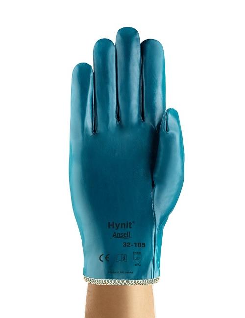 Hynit® 208035 32-125 Industrial Grade Gloves, Cut and Sewn Style, SZ 10, Blue/Off White, Slip-On Cuff, Nitrile Coating, Resists: Abrasion/Oil/Dirt/Grease, Cotton/Polyester Lining