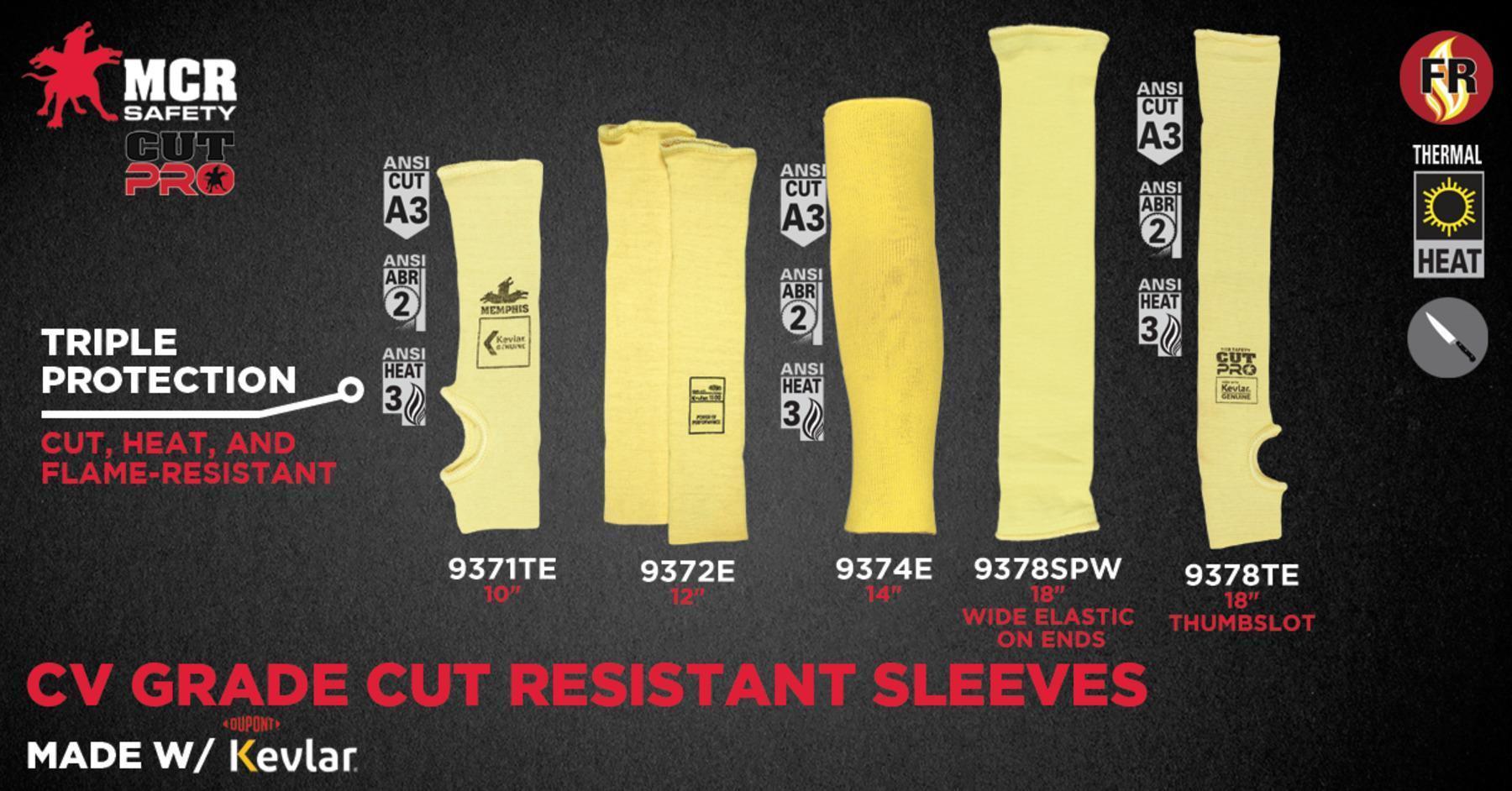 MCR Safety 9378TE Economy Grade High Performance Cut-Resistant Sleeve With Thumb Slot, 18 in L x 7 ga THK, DuPont™ Kevlar® Fiber, Yellow