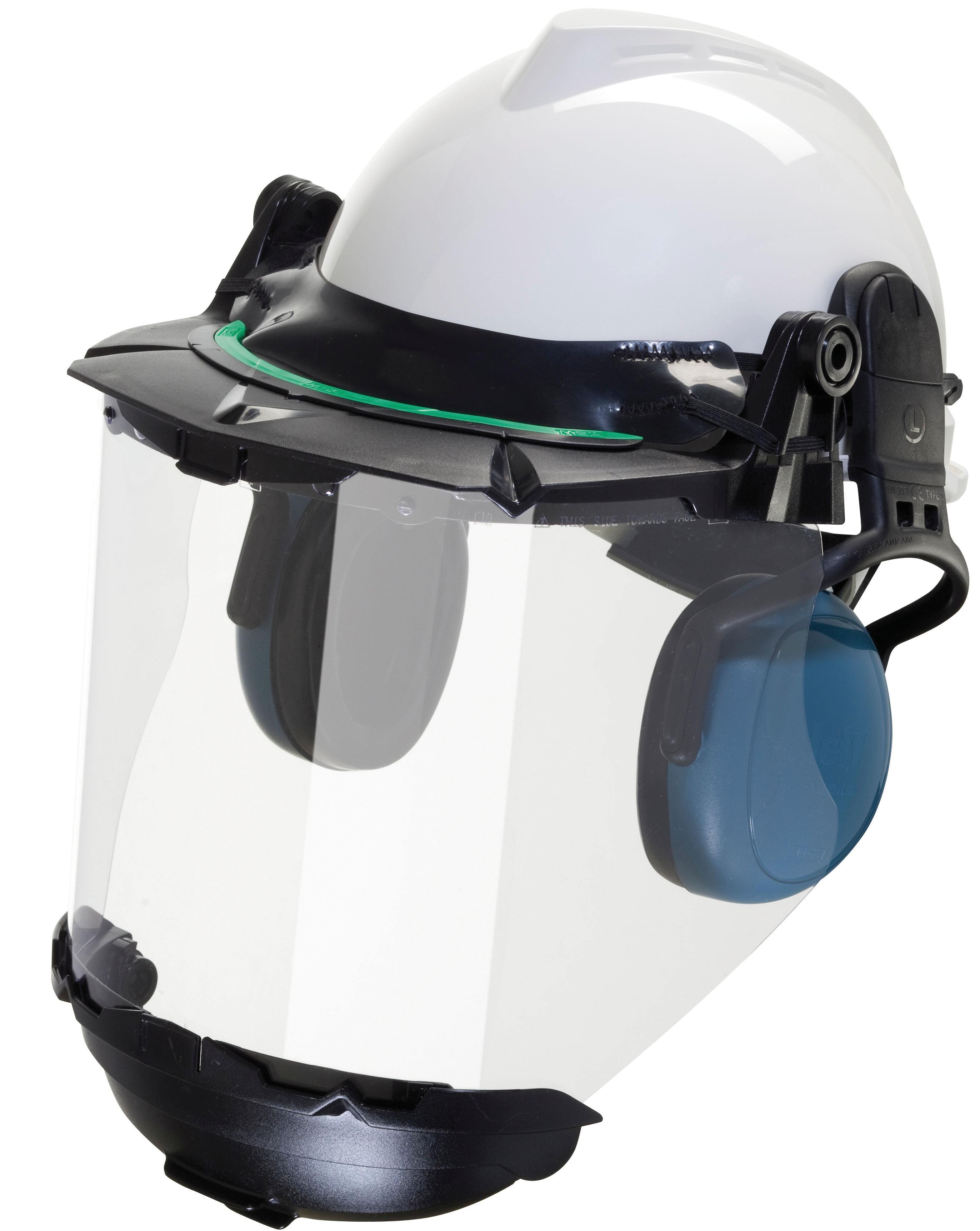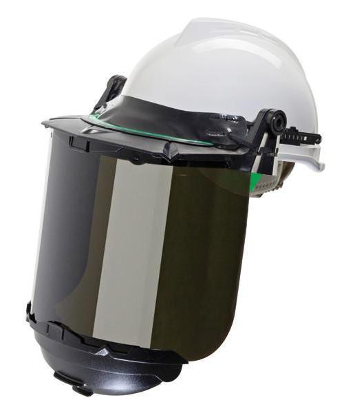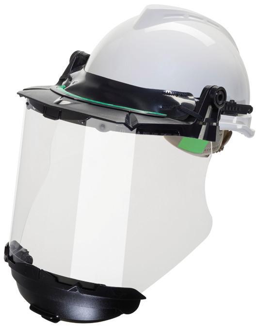 The standard slotted frame works ideally with any MSA slotted helmet. The universal frame featuring a heavy-duty, flat, rubber strap can be used with slotted and non-slotted MSA helmets. With the unique sloped frame design, material slides off the frame and out of site. The optional debris control creates a tight seal between helmet and frame. The elevated temperature versions withstand temperatures up to 350ºF (176ºC).