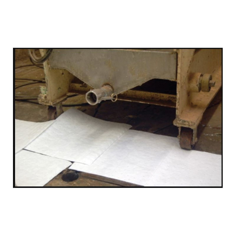 Essentials O1PM100 Bonded Mediumweight Perforated Sorbent Pad, 18 in L x 15 in W x 1 ply THK, 15 gal Absorption, Meltblown Polypropylene