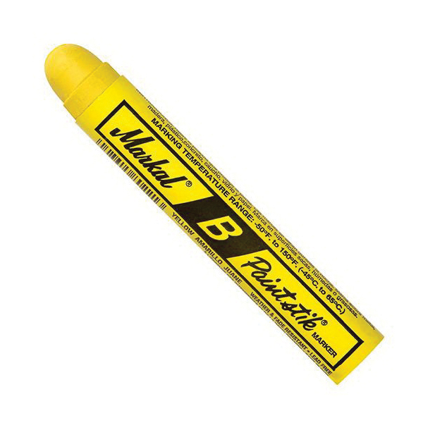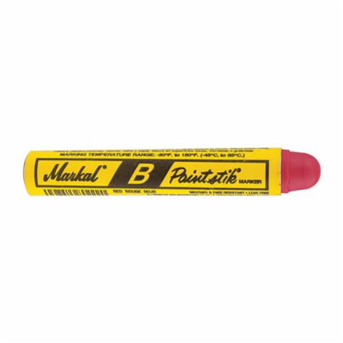 As Markal® most versatile and economic marker, the original B® Paintstik® solid paint marker combines the durability of paint in the convenience of a crayon. The real paint formula has superior marking performance on oily, icy, wet, dry or cold surfaces and is weather and UV-resistant. This Paintstik® works on rough, rusty, smooth or dirty surfaces.
