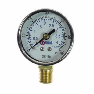 Coilhose® GB1460 Analog Dry Round Pressure Gauge, 0 to 60 psi Pressure, 1/4 in NPT Connection, 2 in Dia Dial, +/- 3-2-3 % Accuracy