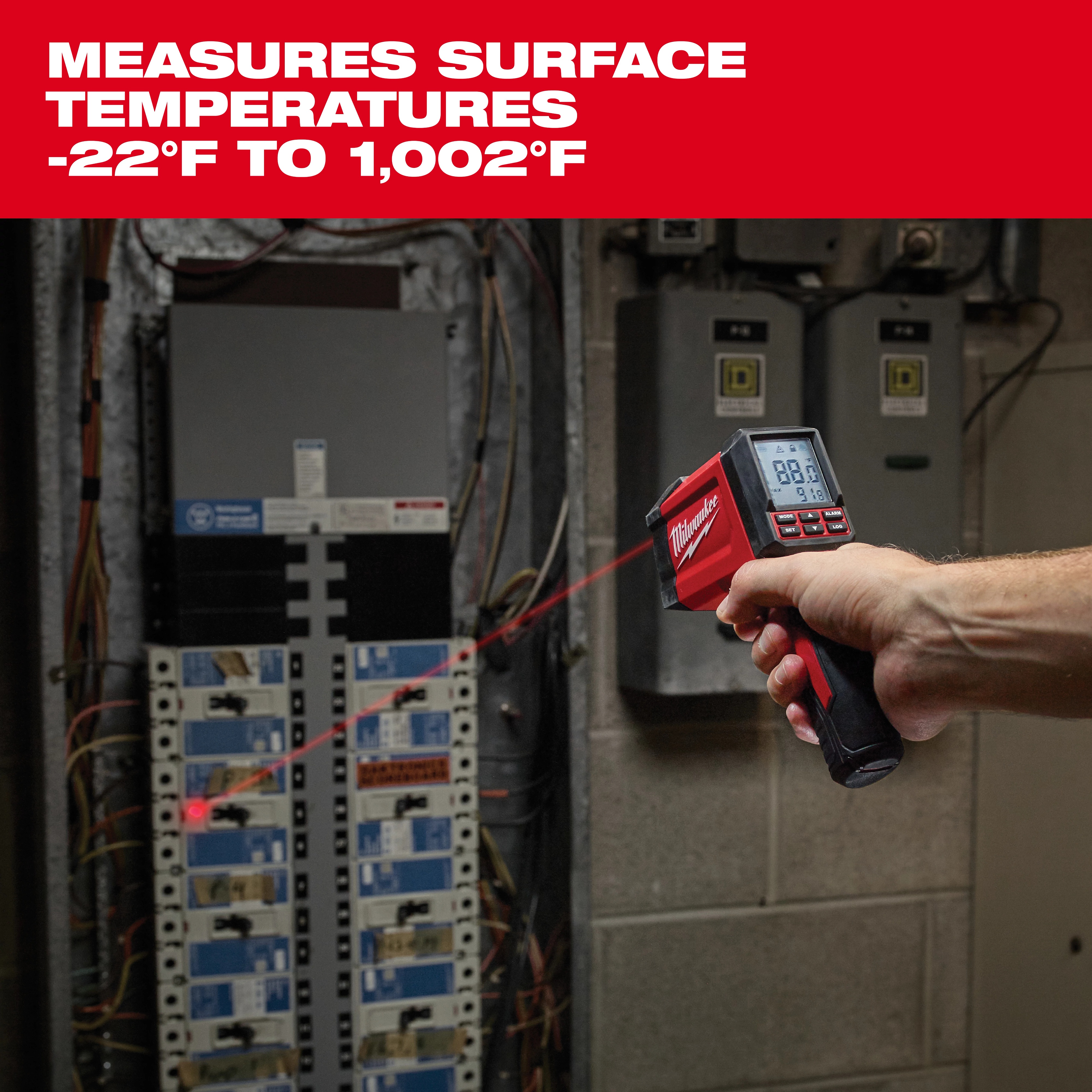 Milwaukee® 2269-20 Infrared Thermometer, -22 to 1022 deg F, +/-2 % Accuracy, 30:1 Focus Spot, 0.1 to 0.99 by 0.01, 9V Battery