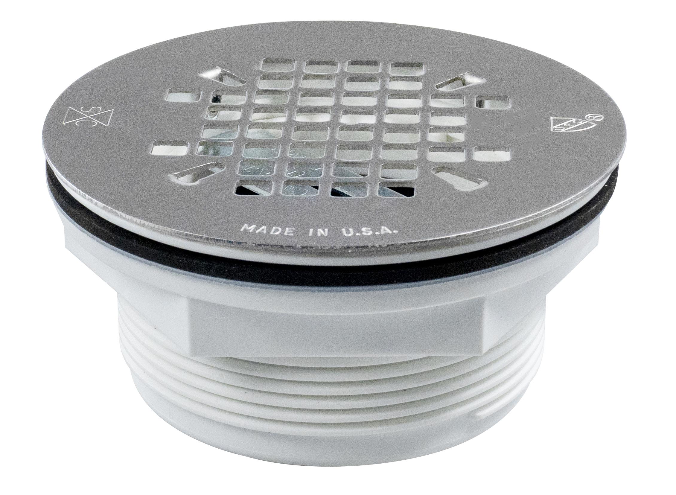 Sioux Chief 827 or 828 series shower module drain shall be used where necessary in drainage systems. Shower drain shall have an outer locknut design with compression gasket connection for Sch. 40 ABS/PVC pipe. Snap-in strainer shall meet all applicable load and flow requirements for intended use. Designed in accordance with ASME A112.18.2-2005/CSA B125.2-05.