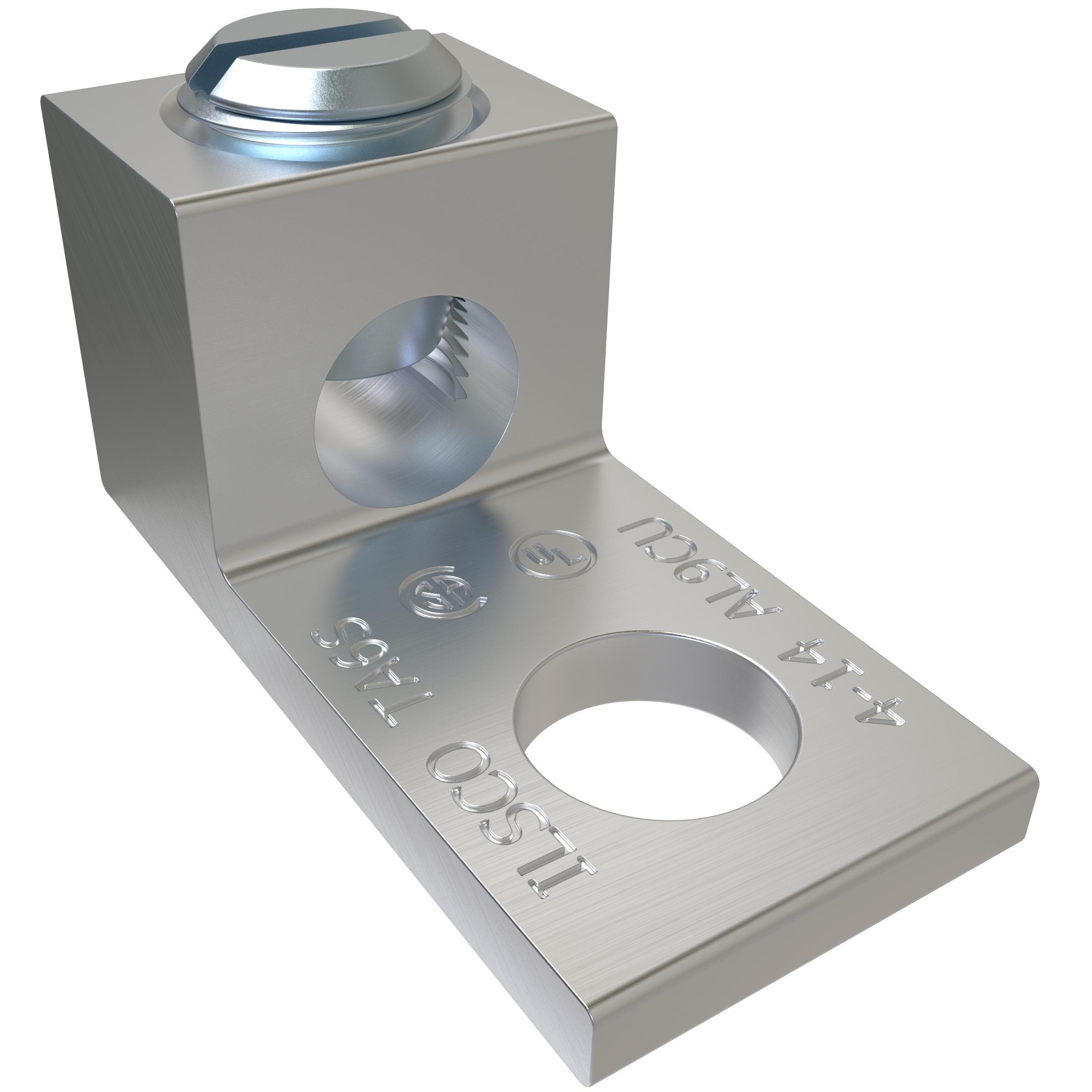 ILSCO® ClearChoice® TA-6-S 1-Conductor Dual Rated Mechanical Terminal Lug, 14 to 4 AWG Aluminum/Copper Conductor, 1/4 in Stud, 1 Bolt Hole, 6061-T6 Aluminum Alloy