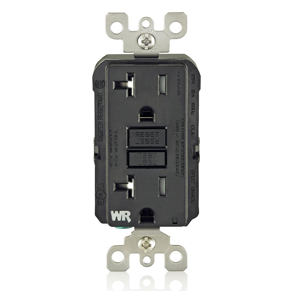 Leviton® GFWT2-E Duplex Feed Through Self-Test Slim Tamper/Weather Resistant GFCI Receptacle With Black Test, Reset Button, 125 V AC, 20 A, 2 Poles, 3 Wires, Black
