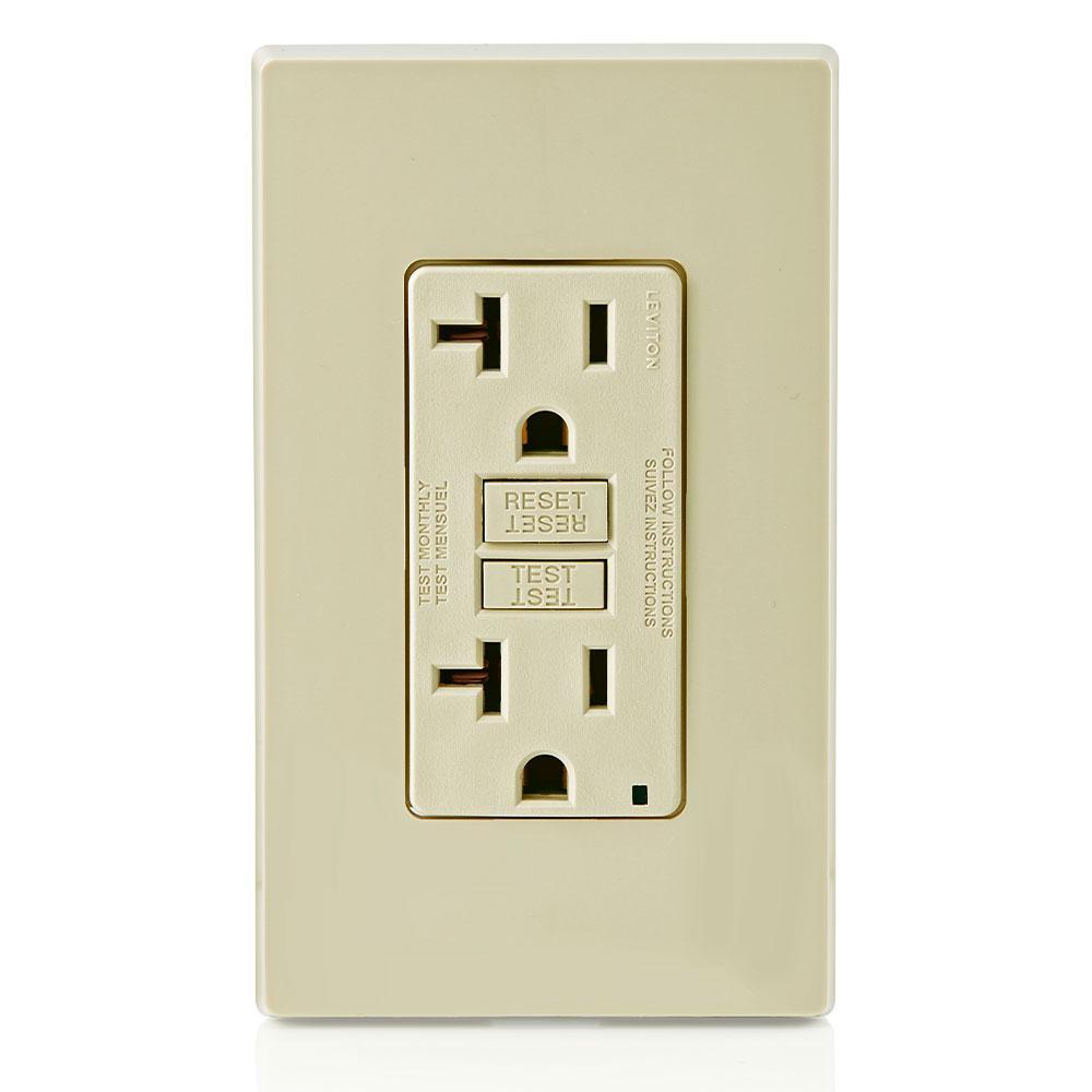 Leviton® SmartlockPro® Slim® GFNT2-I Feed Through Monochromatic Non-Tamper Resistant Self-Test Standard Duplex GFCI Receptacle With LED Indicator, 125 V AC, 20 A, 2 Poles, 3 Wires, Ivory
