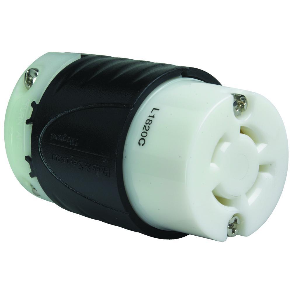 Pass & Seymour® Turnlok® L1820-C 3-Phase Locking Connector, 120/208 V AC, 20 A, 4 Poles, 4 Wires, Black/White
