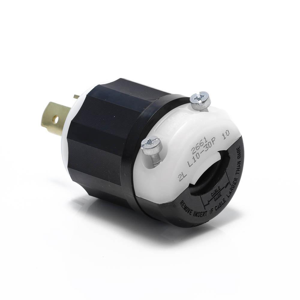 Leviton® 2661 Cable Mount Non-Grounding Locking Plug, 125/250 V AC, 30 A, 3 Poles, 3 Wires, Black/White