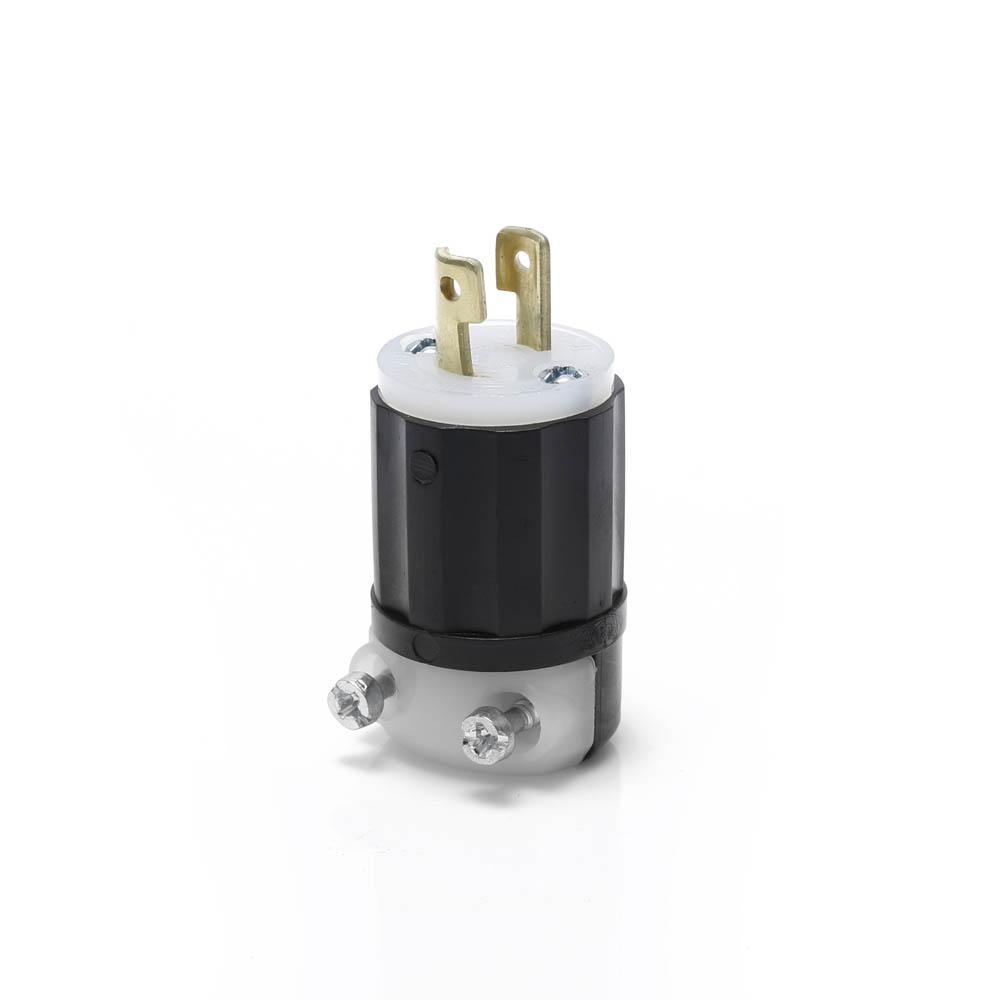 Leviton® ML1-P Cable Mount Non-Grounding Locking Plug, 125 V AC, 15 A, 2 Poles, 2 Wires, Black/White