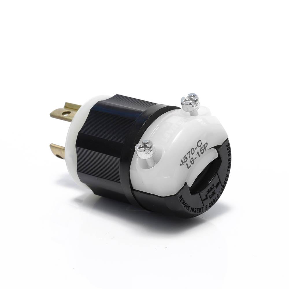 Leviton® 4570-C Cable Mount Grounding Locking Plug, 250 V AC, 15 A, 2 Poles, 3 Wires, Black/White