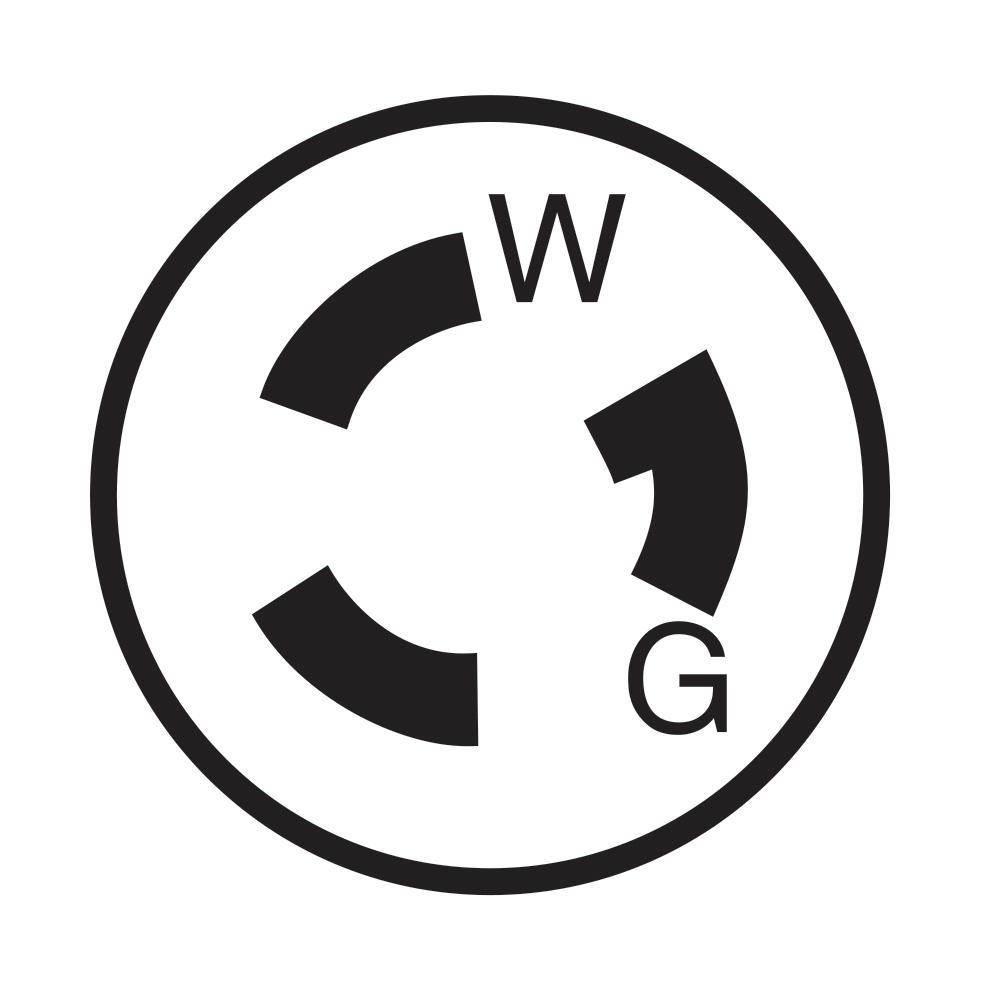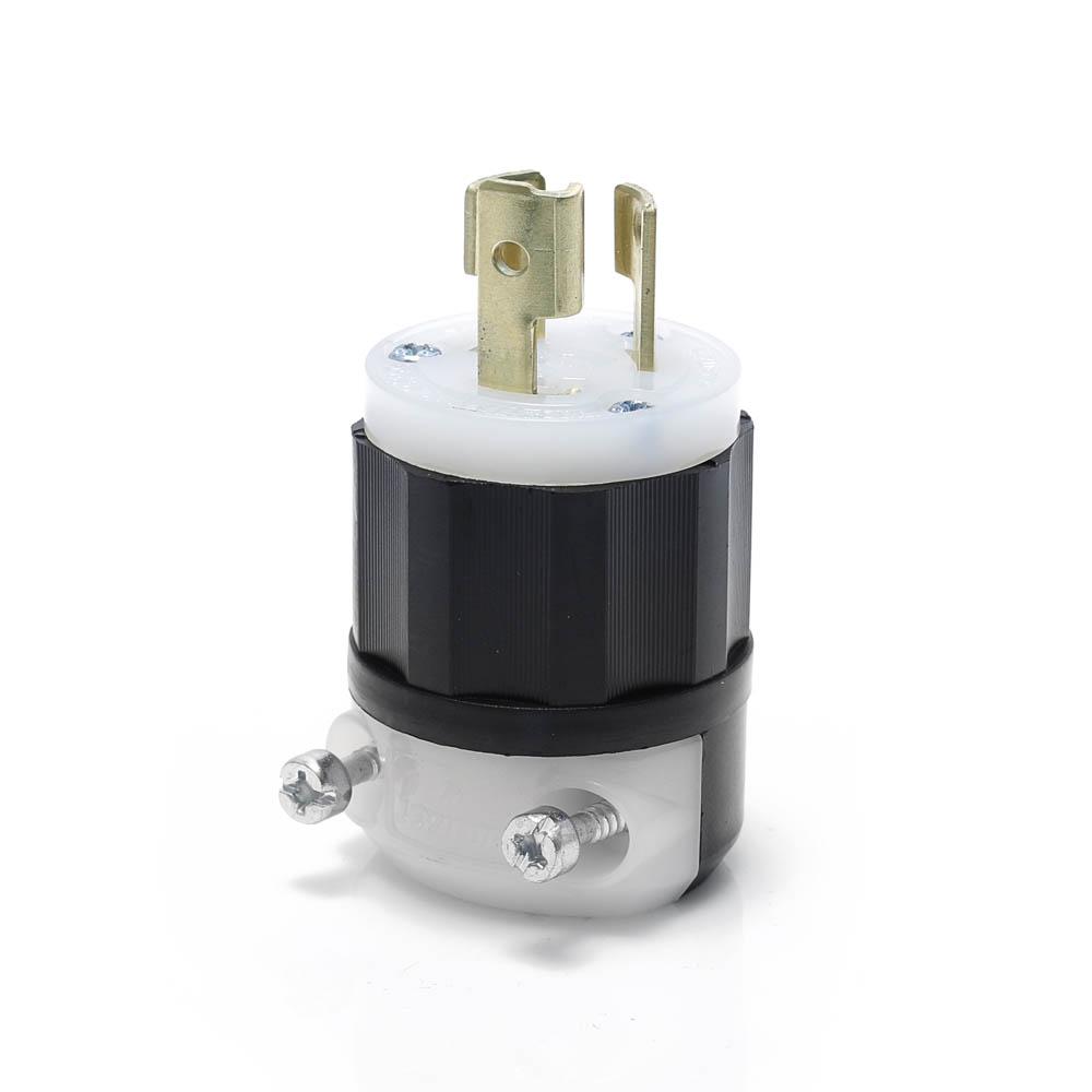 Leviton® 4770-C Cable Mount Grounding Locking Plug, 277 V AC, 15 A, 2 Poles, 3 Wires, Black/White