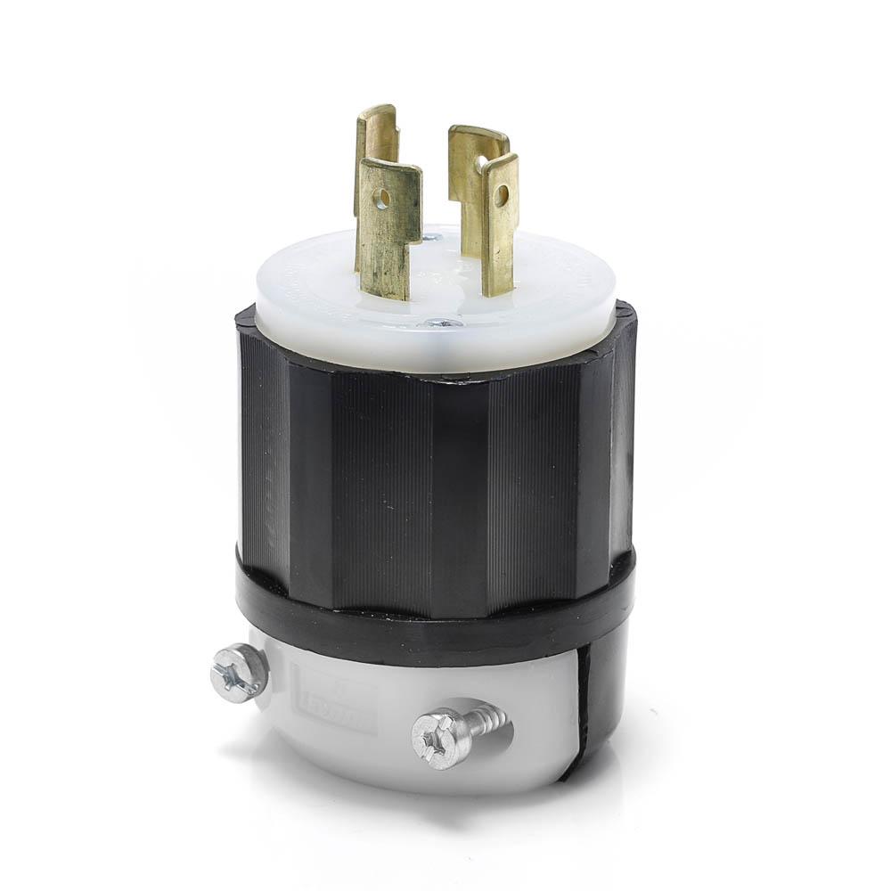 Leviton® 2331 1-Phase Grounding Cable Mount Locking Plug, 277 V AC, 20 A, 2 Poles, 3 Wires, Black/White
