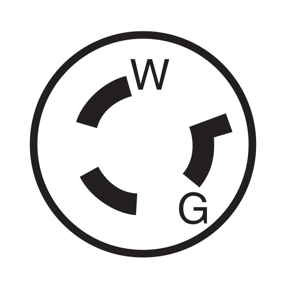 Leviton® 2631 1-Phase Grounding Cable Mount Locking Plug, 277 V AC, 30 A, 2 Poles, 3 Wires, Black/White