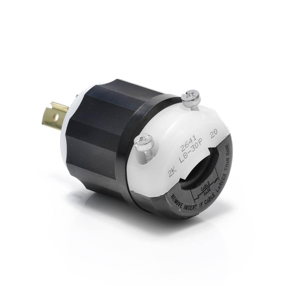 Leviton® C2623 1-Phase Cable Mount Grounding Locking Connector, 250 V AC, 30 A, 2 Poles, 3 Wires, Black/White