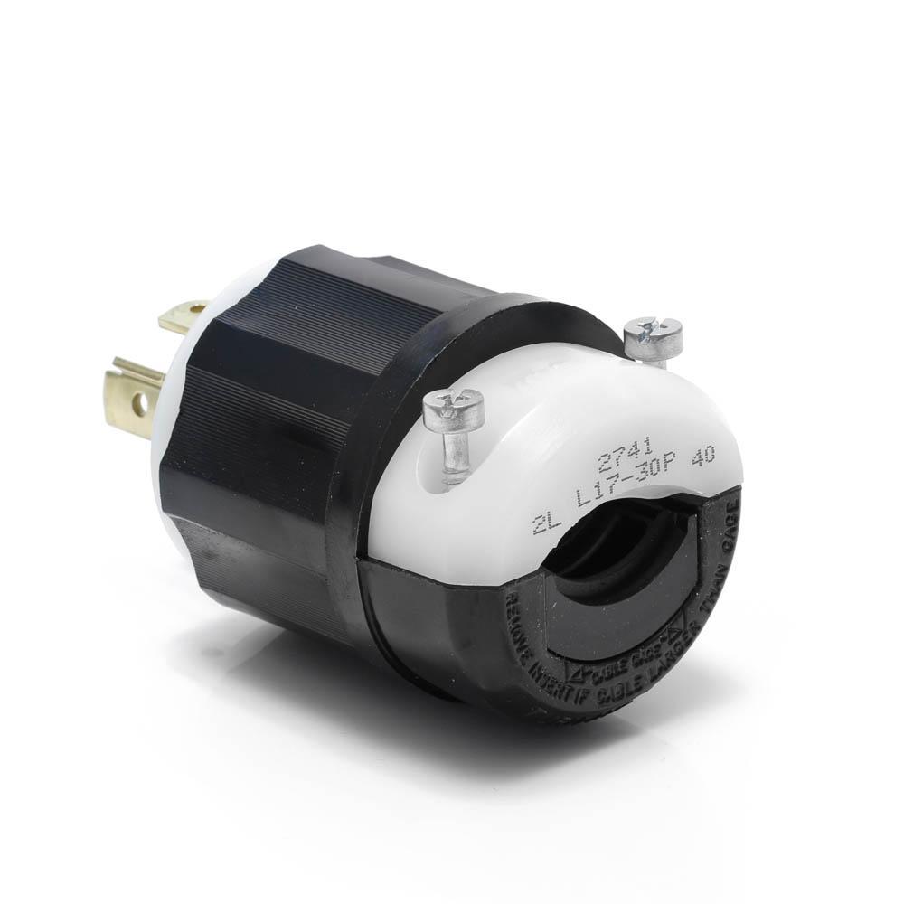 Leviton® 2741 3-Phase Grounding Cable Mount Locking Plug, 600 V AC, 30 A, 3 Poles, 4 Wires, Black/White