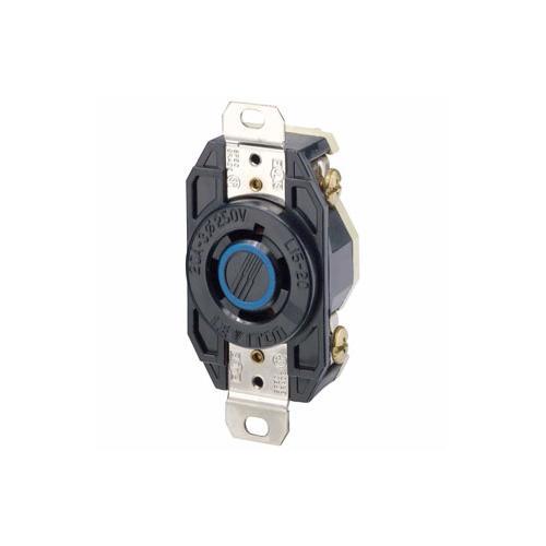Leviton® 2620 Grounding Locking Receptacle, 250 V AC, 30 A, 2 Poles, 3 Wires, Black
