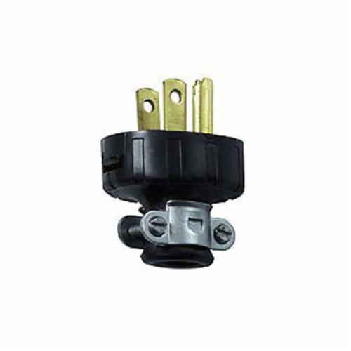 Leviton® 5266-C Cable Mount Grounding Straight Blade Plug, 125 V AC, 15 A, 2 Poles, 3 Wires, Black/White