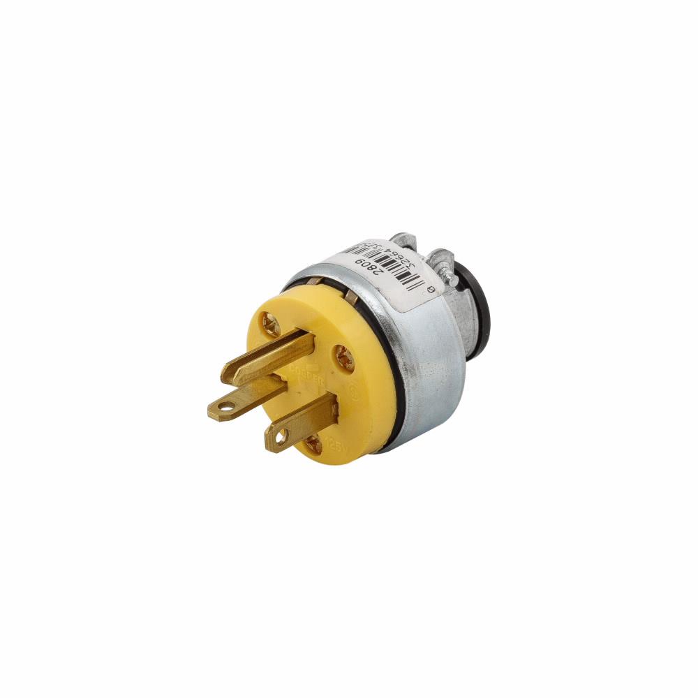 EATON 2809-BOX Armored Straight Blade Plug, 125 V, 20 A, 2 Poles, 3 Wires, Yellow