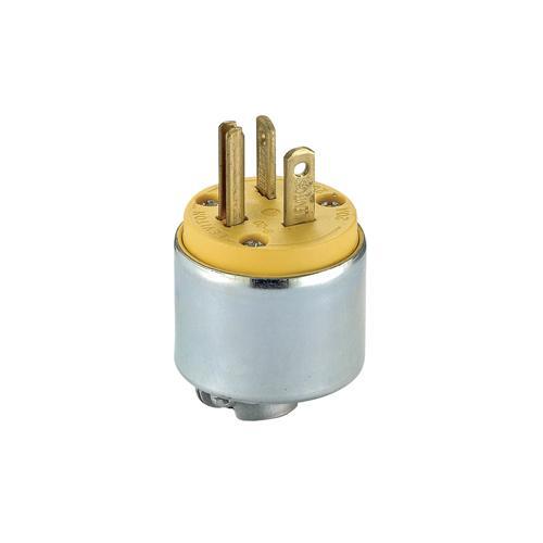 Leviton® 620PA Armored Cable Mount Grounding Straight Blade Plug, 250 V AC, 20 A, 2 Poles, 3 Wires, Yellow