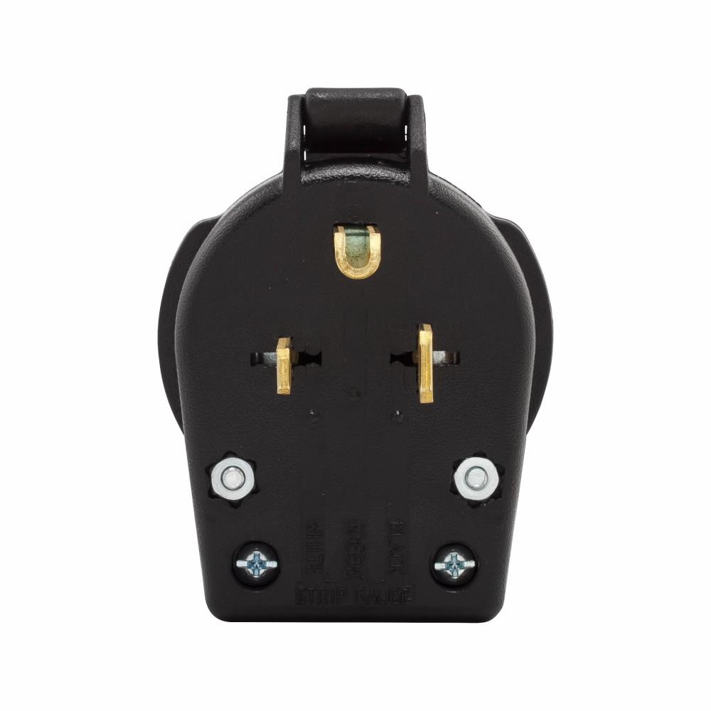 - Universal plugs include blades for both 30 A and 50 A configurations of the same voltage