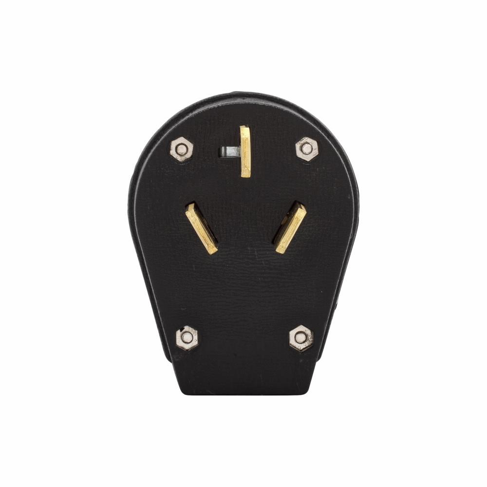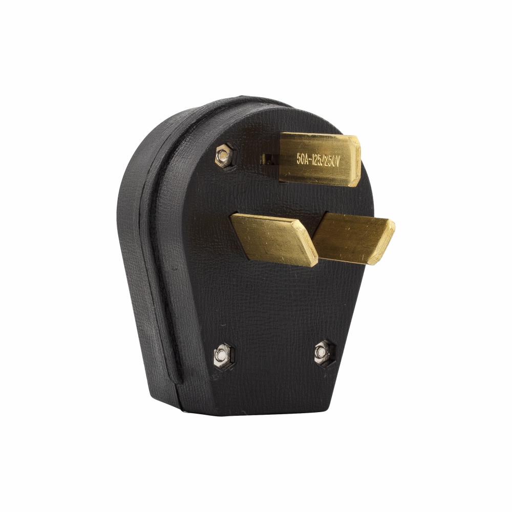 - Universal plugs include blades for both 30 A and 50 A configurations of the same voltage