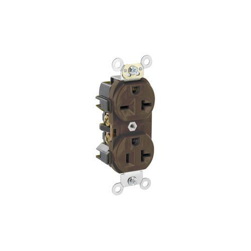 Leviton® 5844 1-Phase Duplex Dual Voltage Self-Grounding Straight Blade Receptacle, 125/250 V AC, 20 A, 2 Poles, 3 Wires, Brown