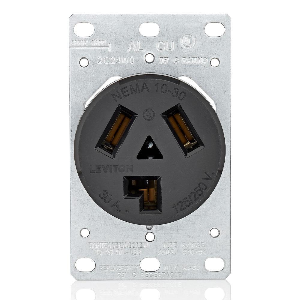 Built of durable thermoplastic, Leviton® power receptacles - come equipped with heavy gauge, double wire copper alloy contacts. To ensure correct and speedy wiring, terminals have ID markings. Flush mount receptacles fit Leviton® wide range of 2.15- diameter wallplates and mounting hardware is included.