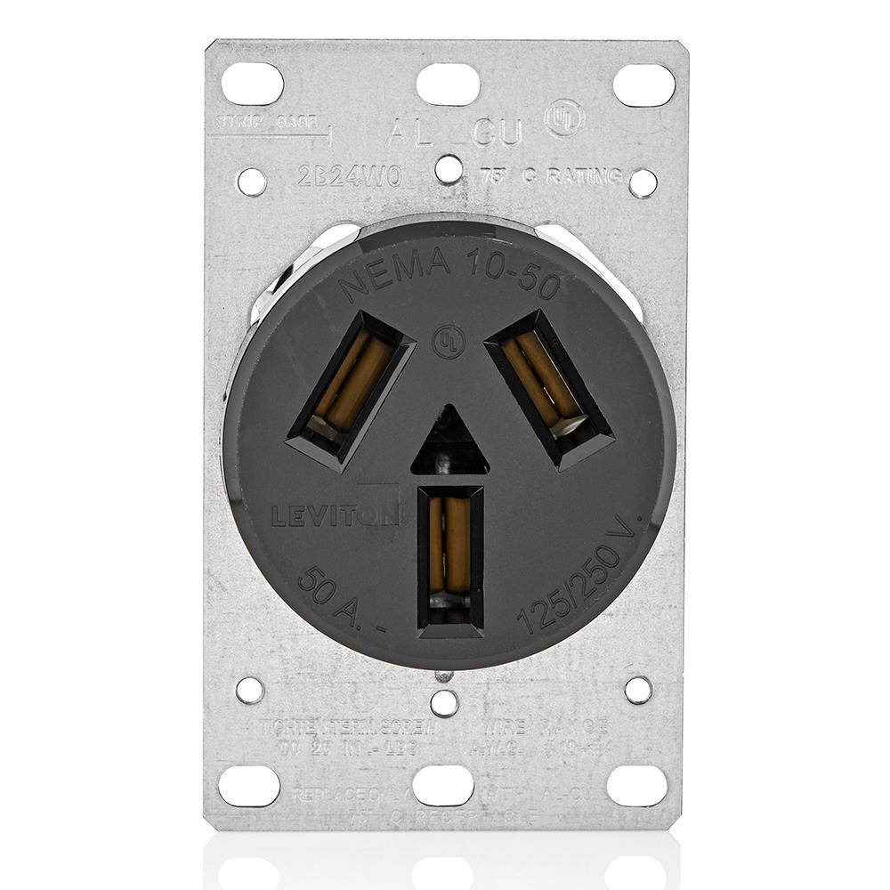 Built of durable thermoplastic, Leviton® range and Dryer power outlets - in flush mount, surface mount and panel mount versions - come equipped with heavy gauge, double-wire copper alloy contacts. To ensure correct and speedy wiring, terminals have ID markings. Flush mount receptacles fit Leviton® wide range of 2.15"-diameter wallplates and mounting hardware is included.
