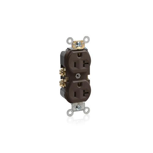 Leviton® BR20 1-Phase Duplex Heavy Duty Straight Blade Receptacle, 125 V AC, 20 A, 2 Poles, 3 Wires, Brown
