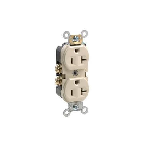Leviton® BR20-I 1-Phase Duplex Heavy Duty Straight Blade Receptacle, 125 V AC, 20 A, 2 Poles, 3 Wires, Ivory