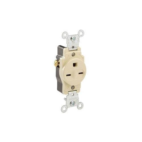 Leviton® 5029-I 1-Phase Heavy Duty Grounding Single Straight Blade Receptacle, 250 V AC, 15 A, 2 Poles, 3 Wires, Ivory