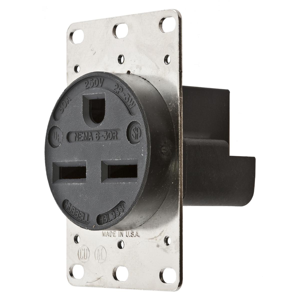 Hubbell Wiring Device-Kellems HBL9330 HBLĀ® 1-Phase Grounding Heavy Duty Standard Single Screw Mount Straight Blade Receptacle, 250 V AC, 30 A, 2 Poles, 3 Wires, Black
