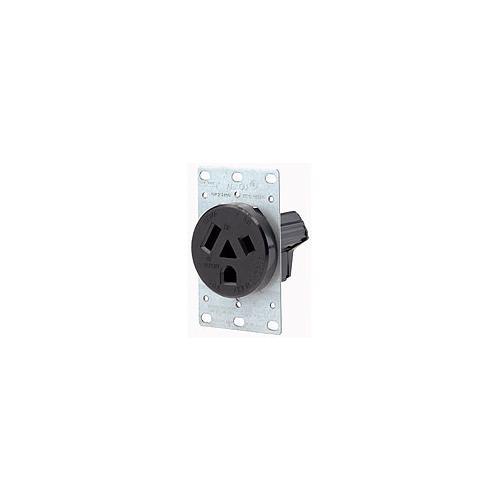 Leviton® 9750-A Extra Heavy Duty Grounding Power Plug Straight Blade Receptacle, 277 VAC, 50 A, 2 Poles, 3 Wires, Black