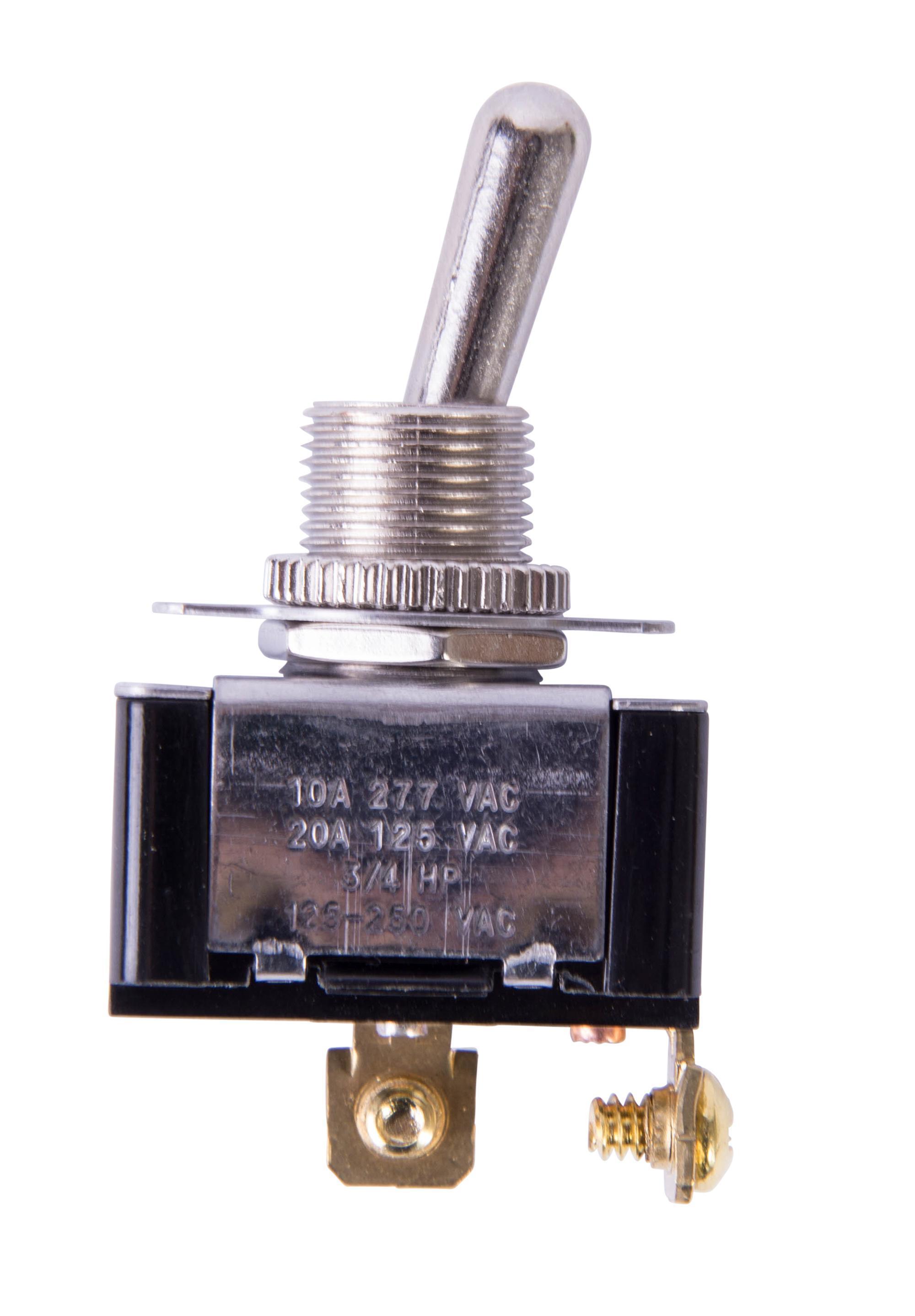 The Gardner Bender 20/10 Amp Toggle Switch features an O ring and has screw terminals for quick-and-easy connections. The switch offers single-pole, single-throw (SPST) ON-OFF circuitry in a classic bat-handle design for easy usage.