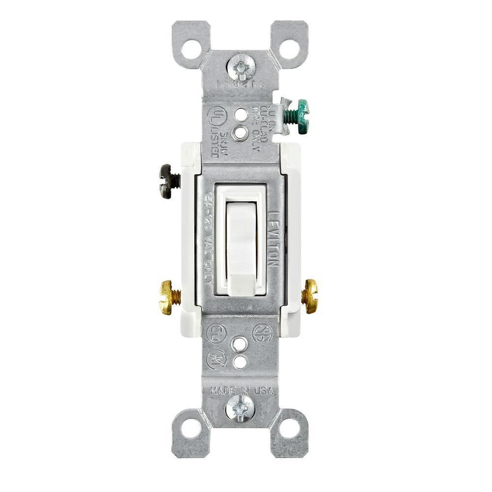 Leviton® 1453-2W 3-Way Grounding AC Quiet Toggle Switch, 120 V AC, 15 A, 1/2, 2 hp Power Rating